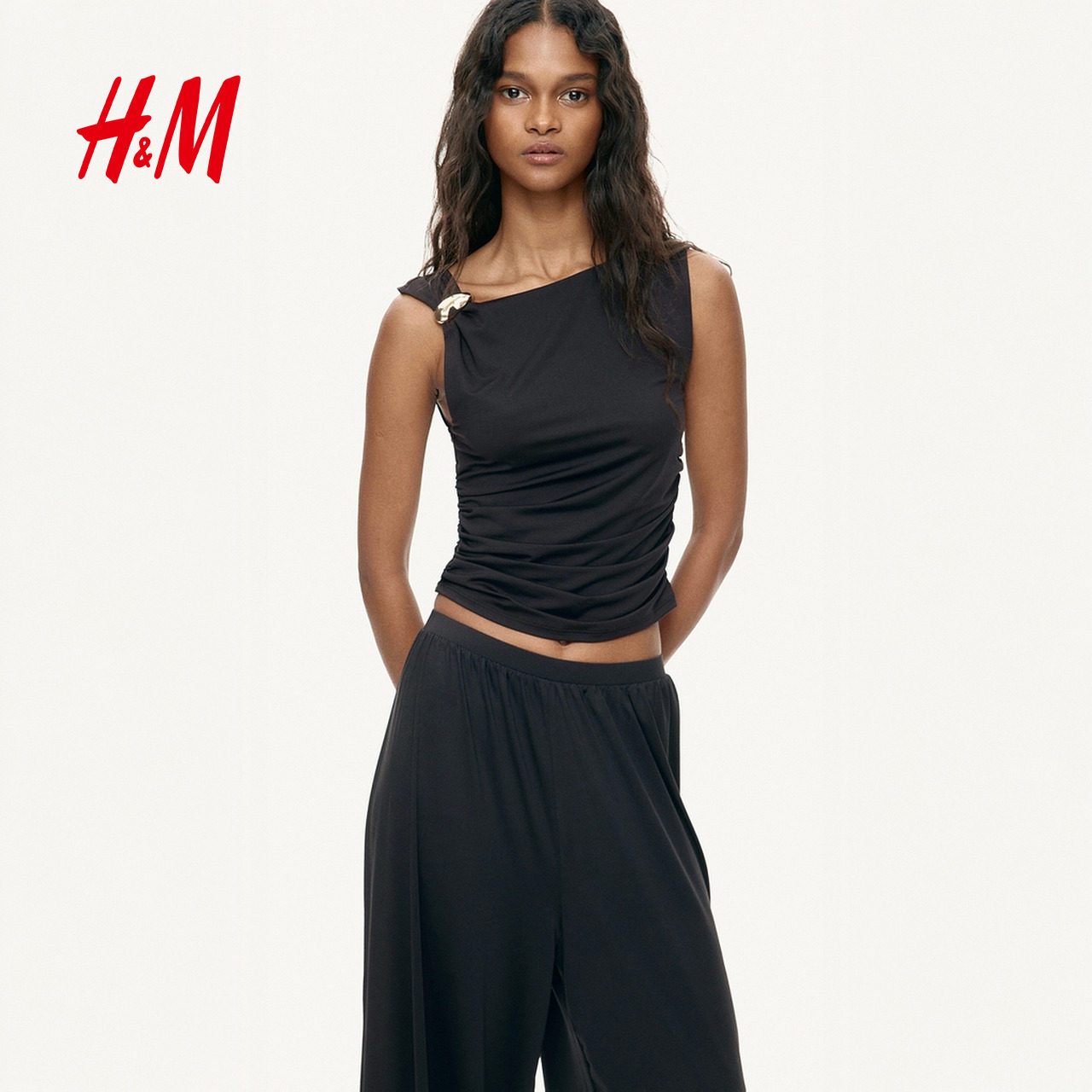 HM女装背心吊带2026春季新款度假风休闲内搭垂褶无袖上衣1320759