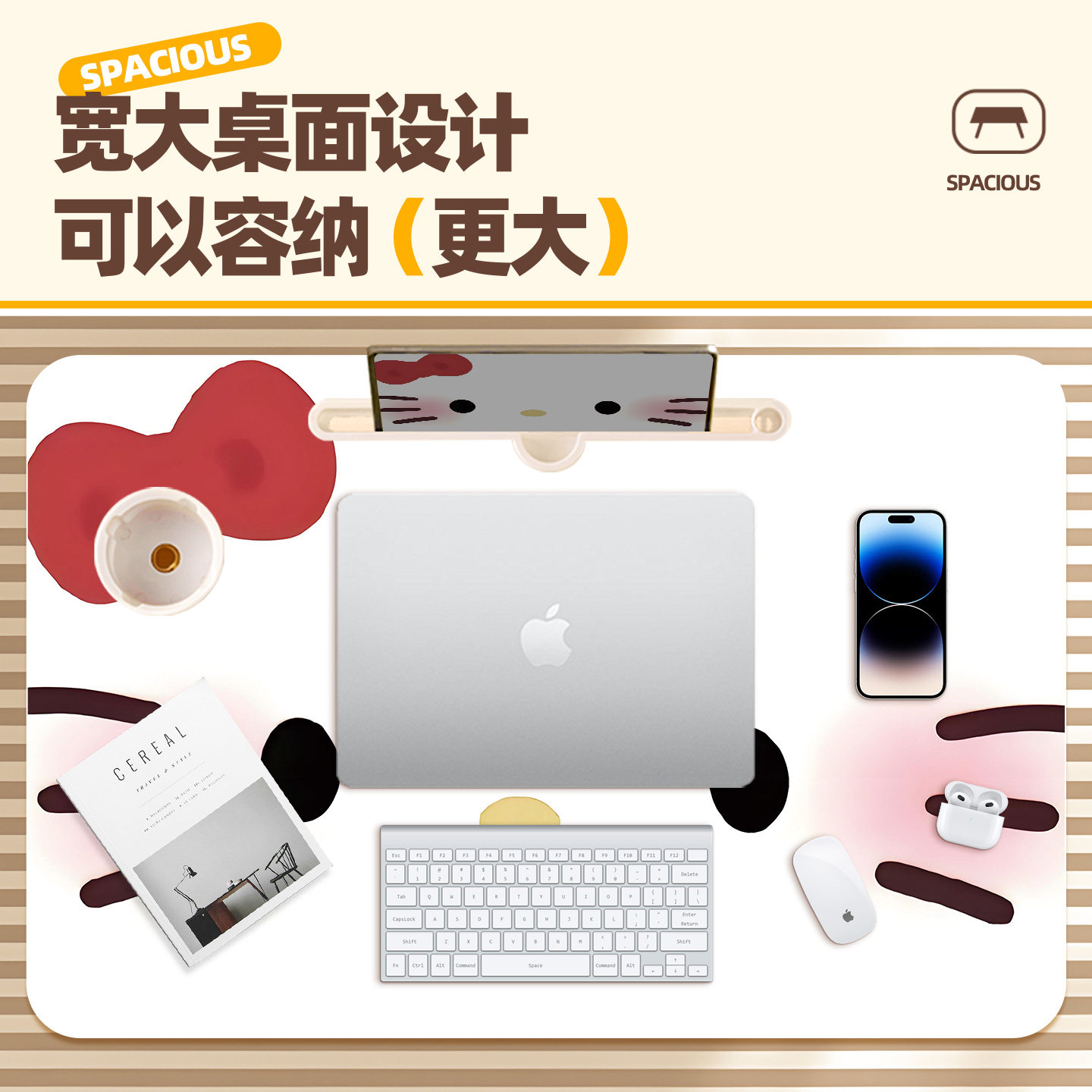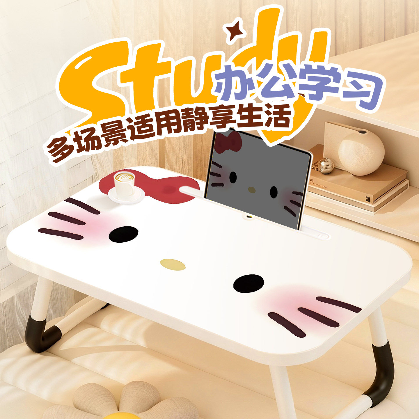 Kitty猫床上小桌子可折叠书桌卧室学习写作业儿童卡通小桌板宿舍飘窗可移动笔记本电脑桌平板阅读支架写字台