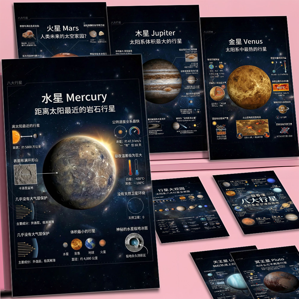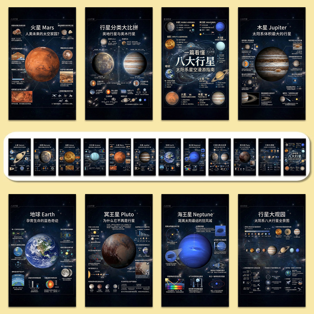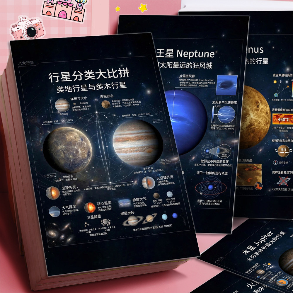 36大张宇宙行星知识科普贴纸中小学生八大恒星了解教育素材贴画