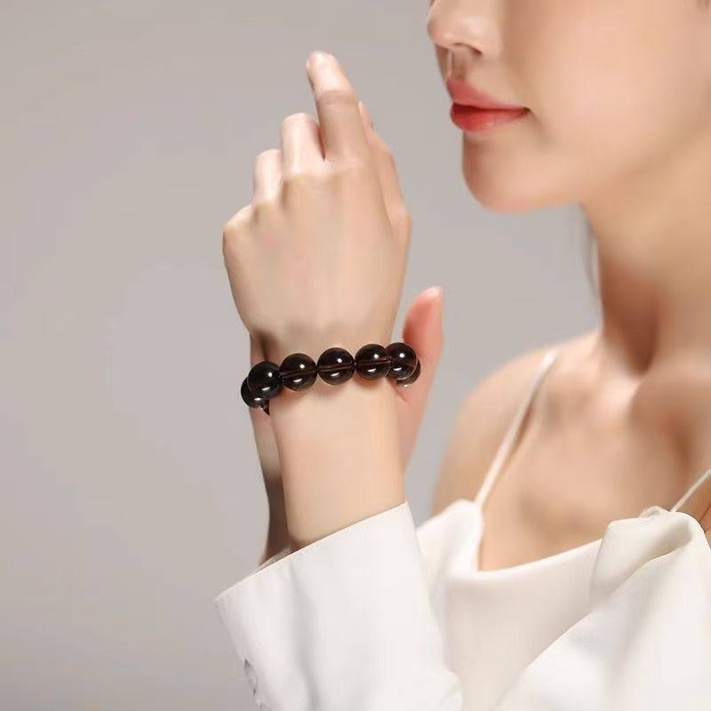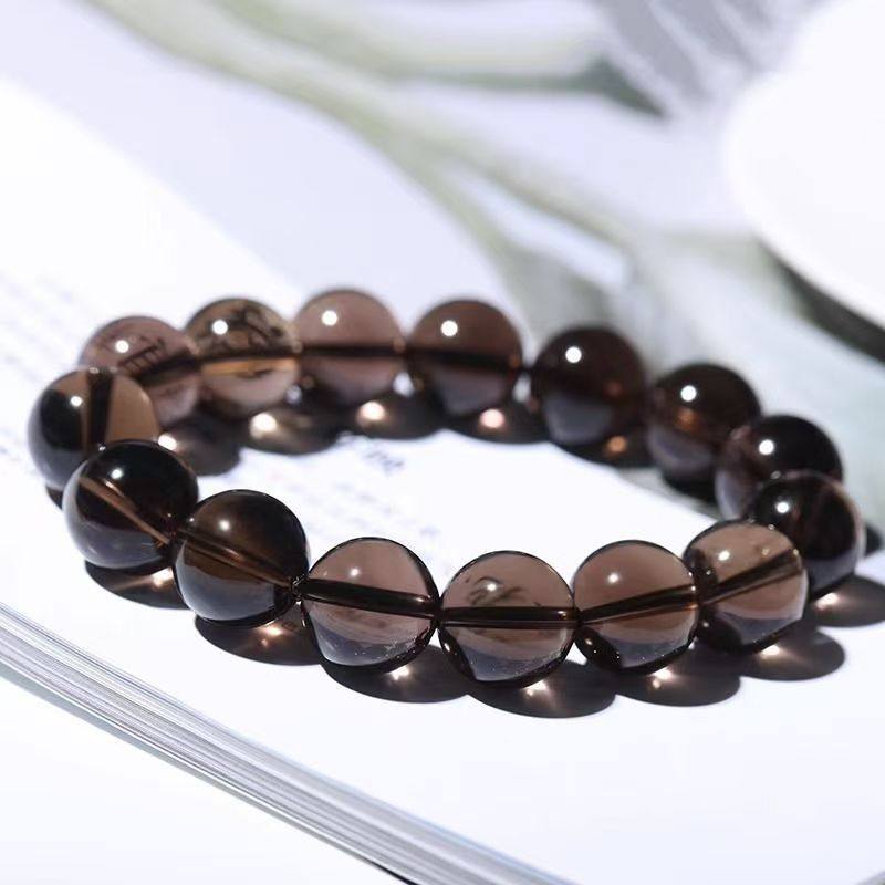 天然茶晶手链男女款单圈手串佛珠纯色茶水晶手串俏烟晶送礼物情侣