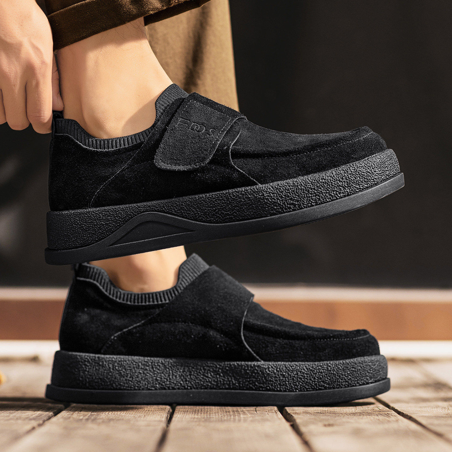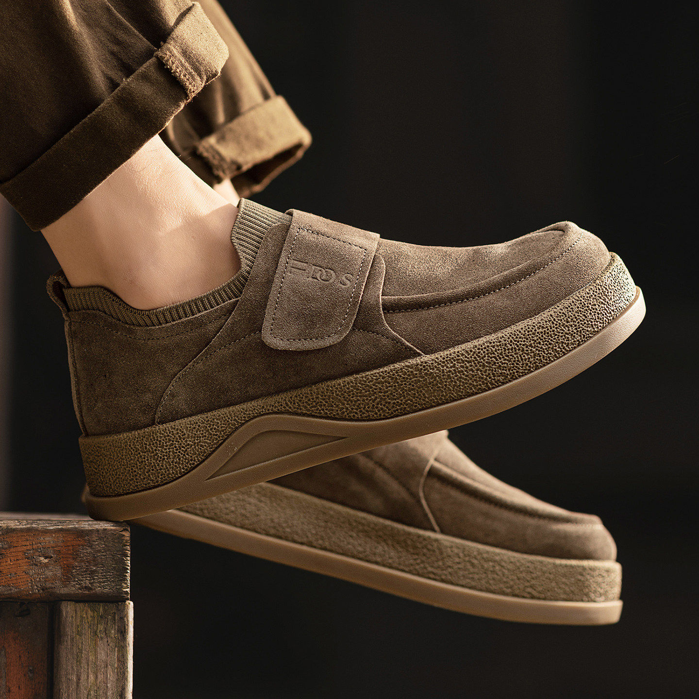 蜘蛛王翻毛皮男鞋2026春季新款一脚蹬运动休闲豆豆板鞋男士开鞋子