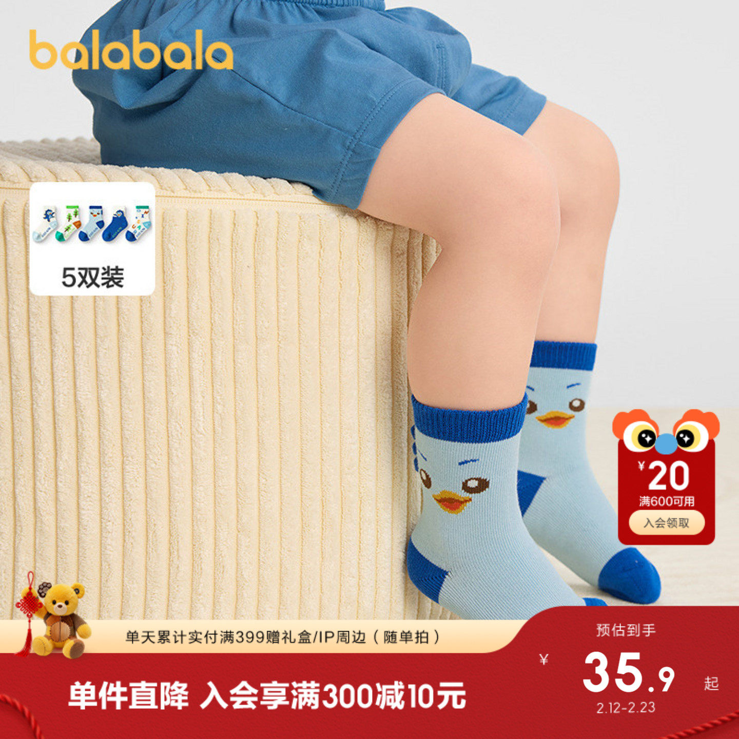 巴拉巴拉儿童袜子宝宝春秋新品婴幼儿中筒袜柔弹无骨手工缝五双装