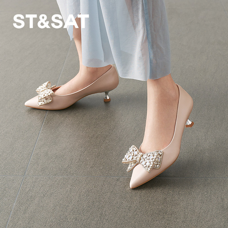 星期六休闲气质高跟鞋蝴蝶结时尚气质流行尖头浅口单鞋SSD1111269