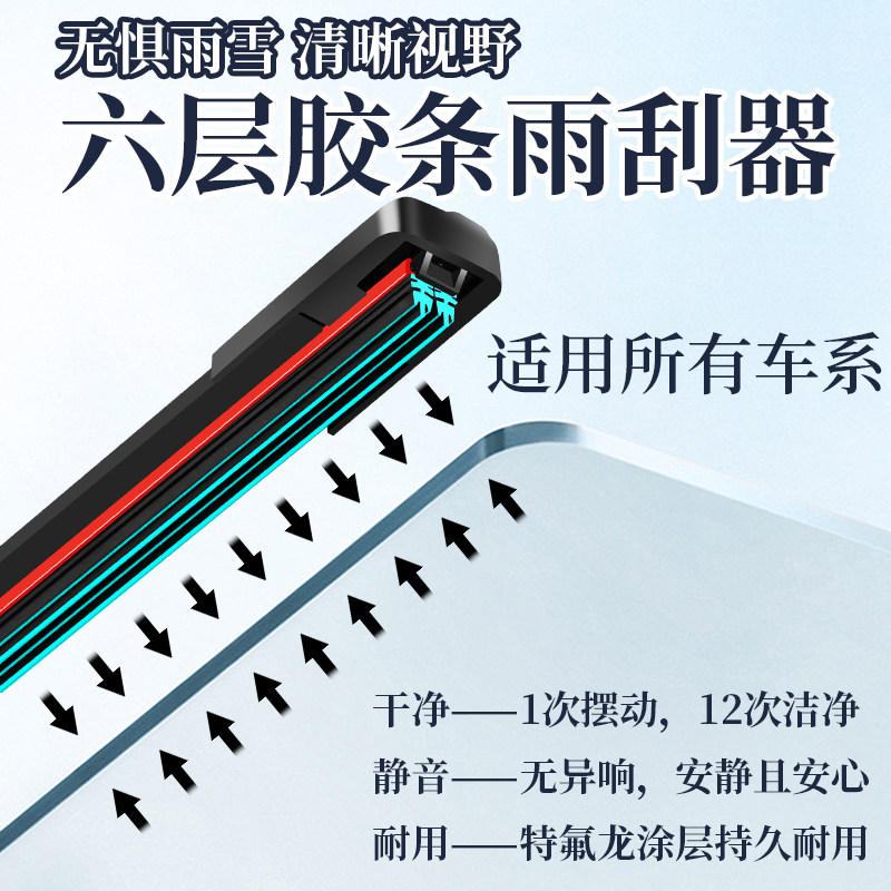 [合金钢片]六层胶条雨刮器汽车无骨雨刷静音双胶条前雨刷片原装