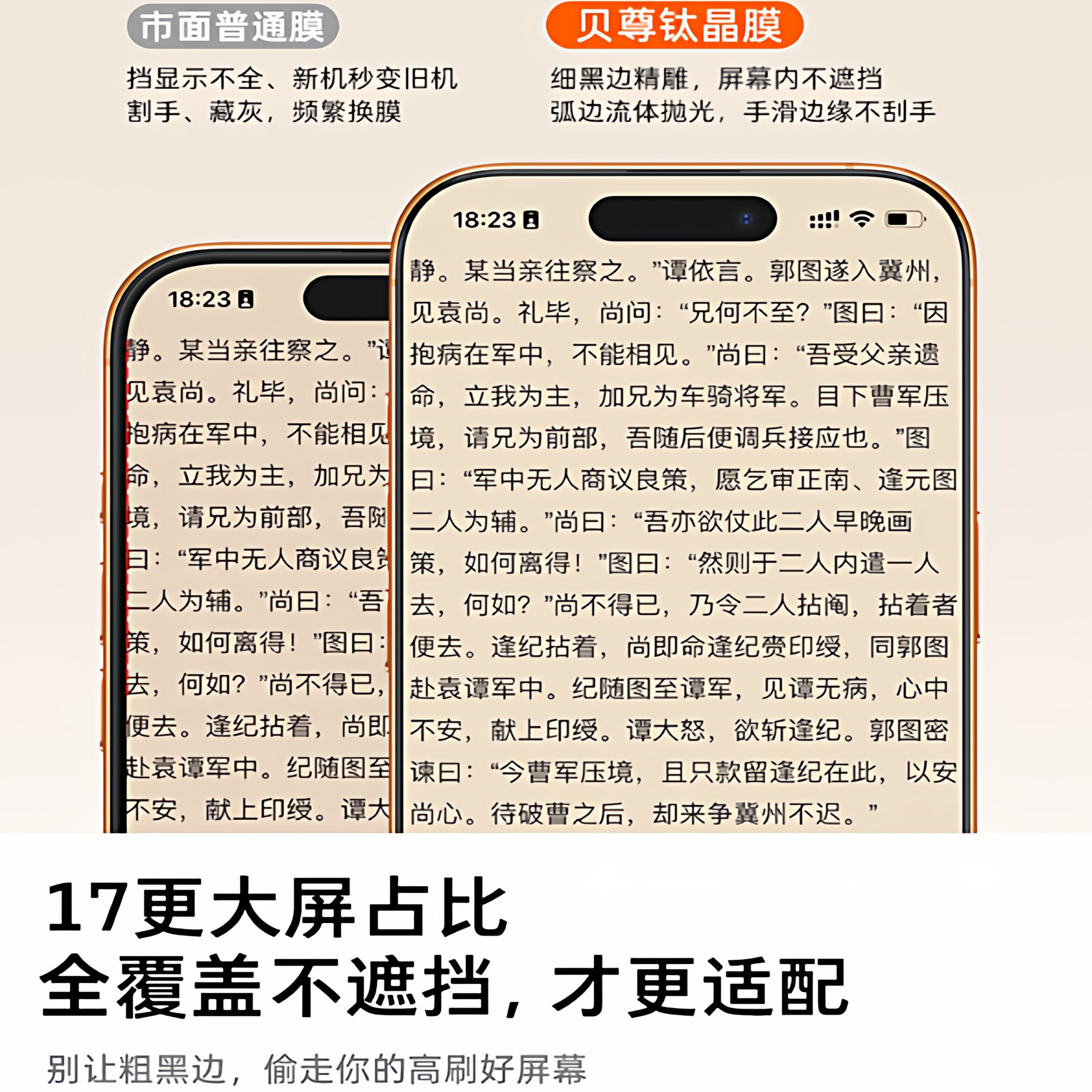 倍思无纹膜适用苹果iPhone17钢化膜AR抗反射16ProMax保护膜15Pro无尘仓14手机贴膜13全屏覆盖12抗摔11防爆Air