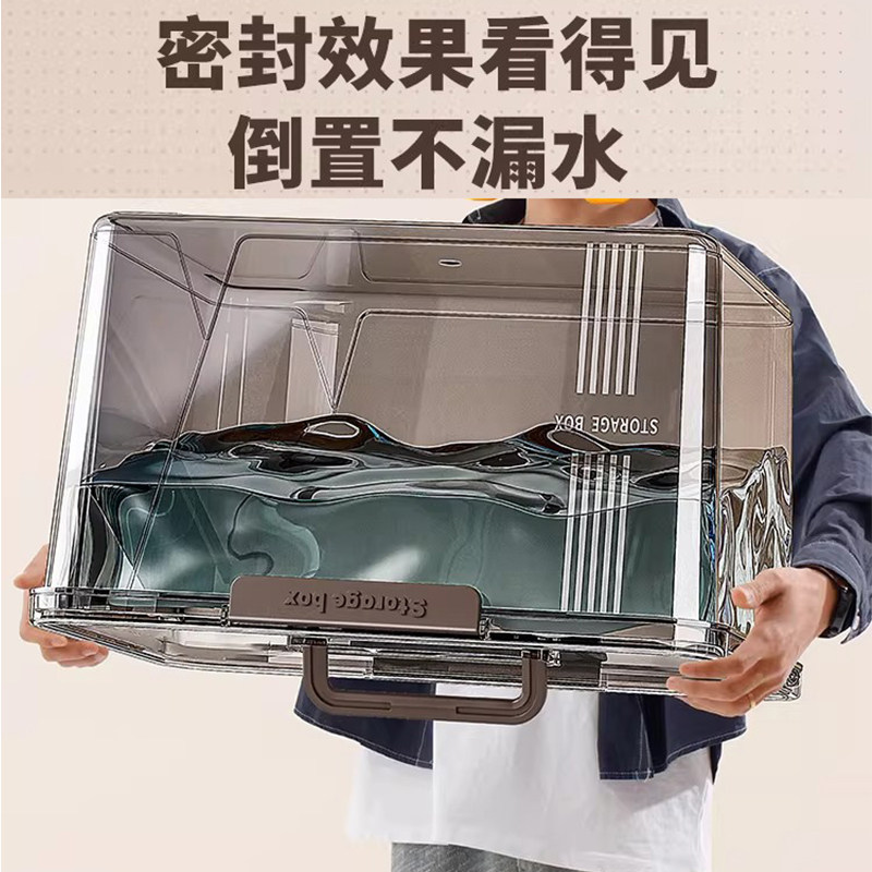 手提透明收纳箱家用衣服玩具零食书本大容量加厚整理箱塑料储物筐