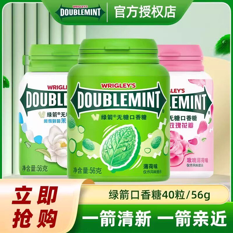 绿箭口香糖瓶装56g薄荷绿茶原味40粒清新口气办公室零食年货糖果