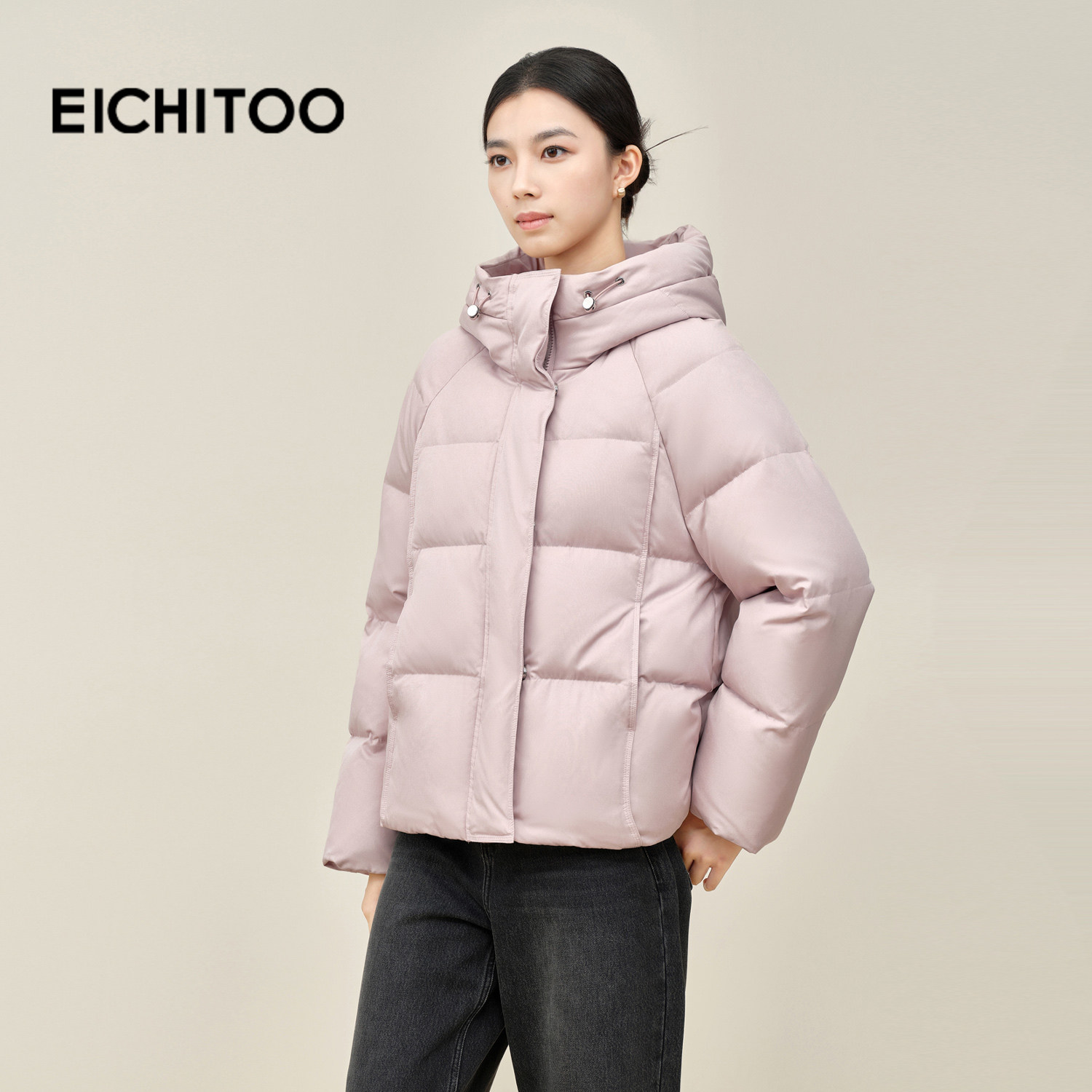 爱居兔减龄连帽羽绒服女2025年冬季新款短款廓形面包服保暖外套