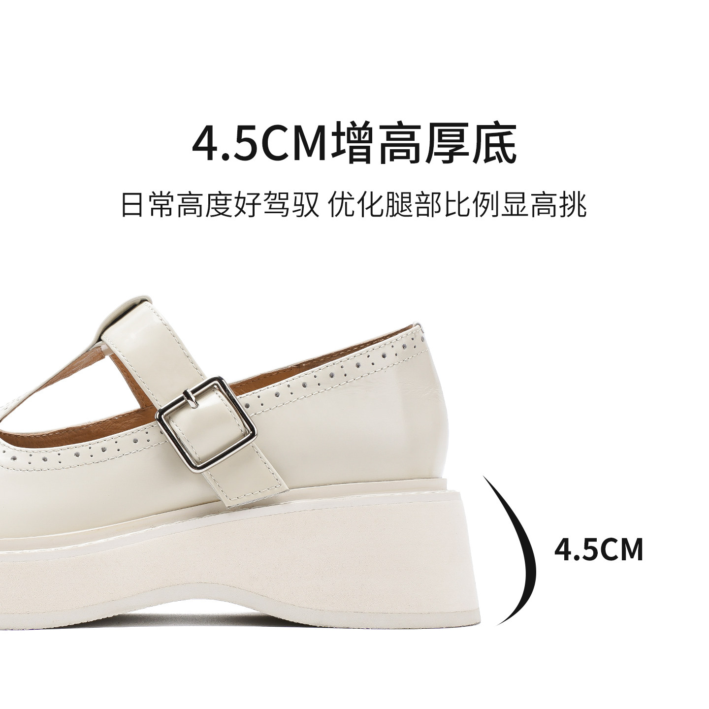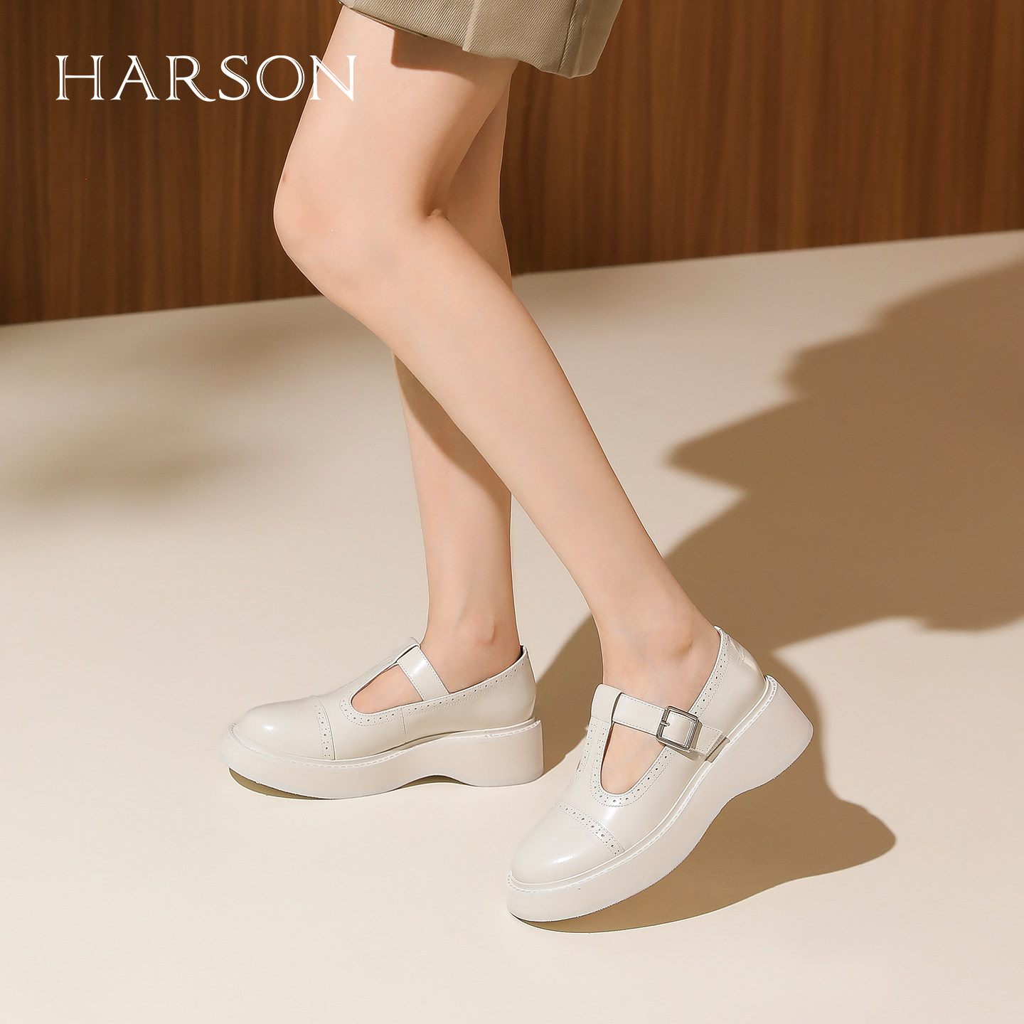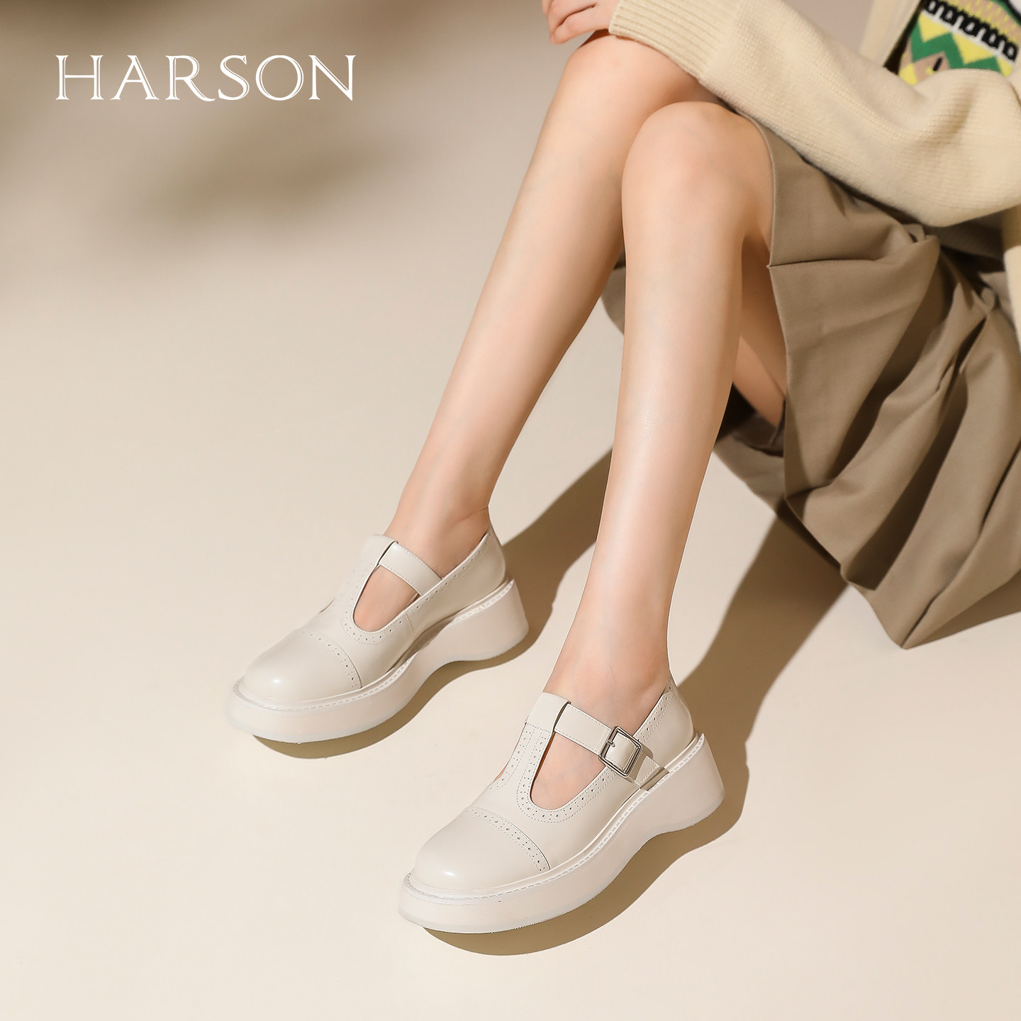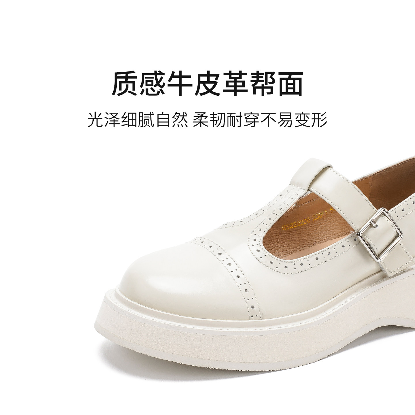 哈森春秋复古风厚底玛丽珍鞋纯色布洛克休闲女单鞋HS229206