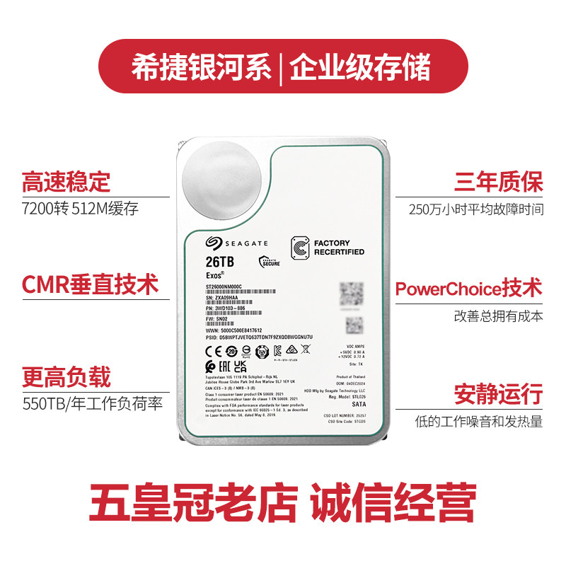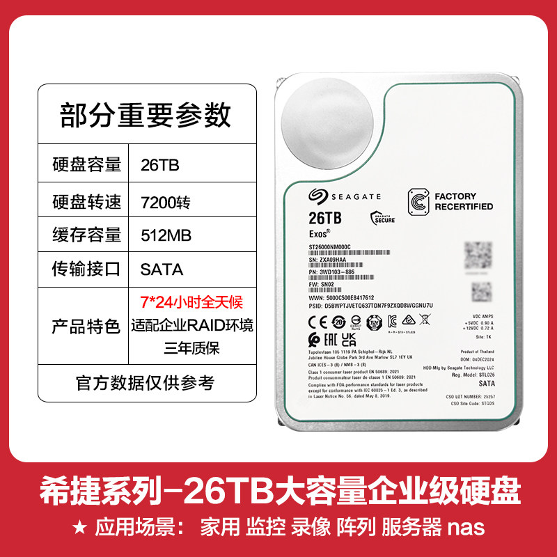 希捷银河企业级ST26000NM000C氦气盘26TB机械硬盘服务器存储监控