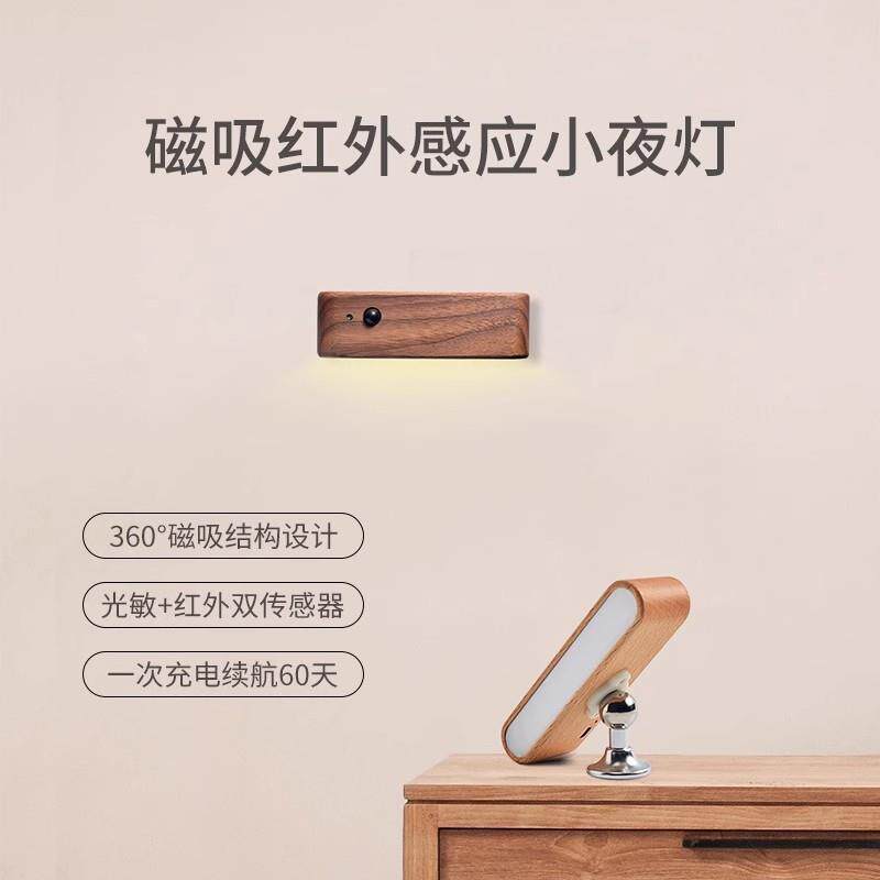 智能AI人体感应原木小夜灯家用过道走廊led起夜灯充电免打孔壁灯