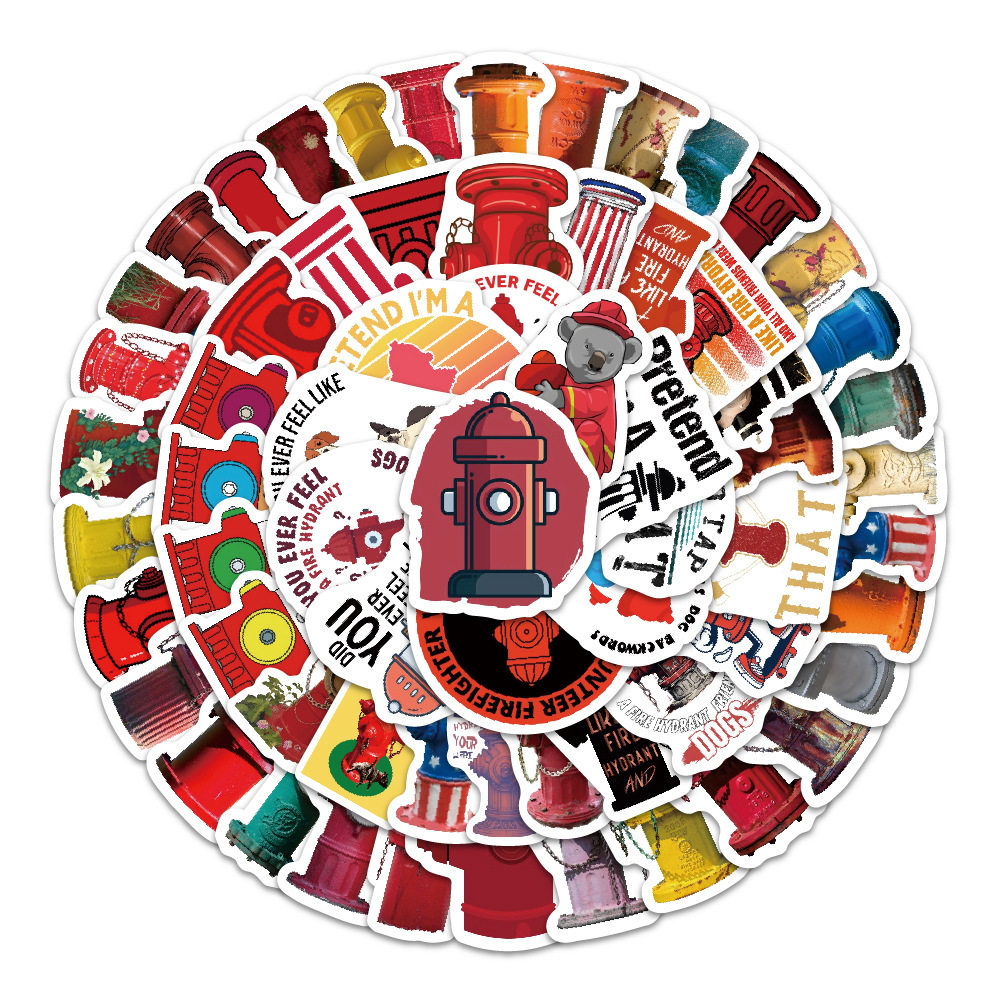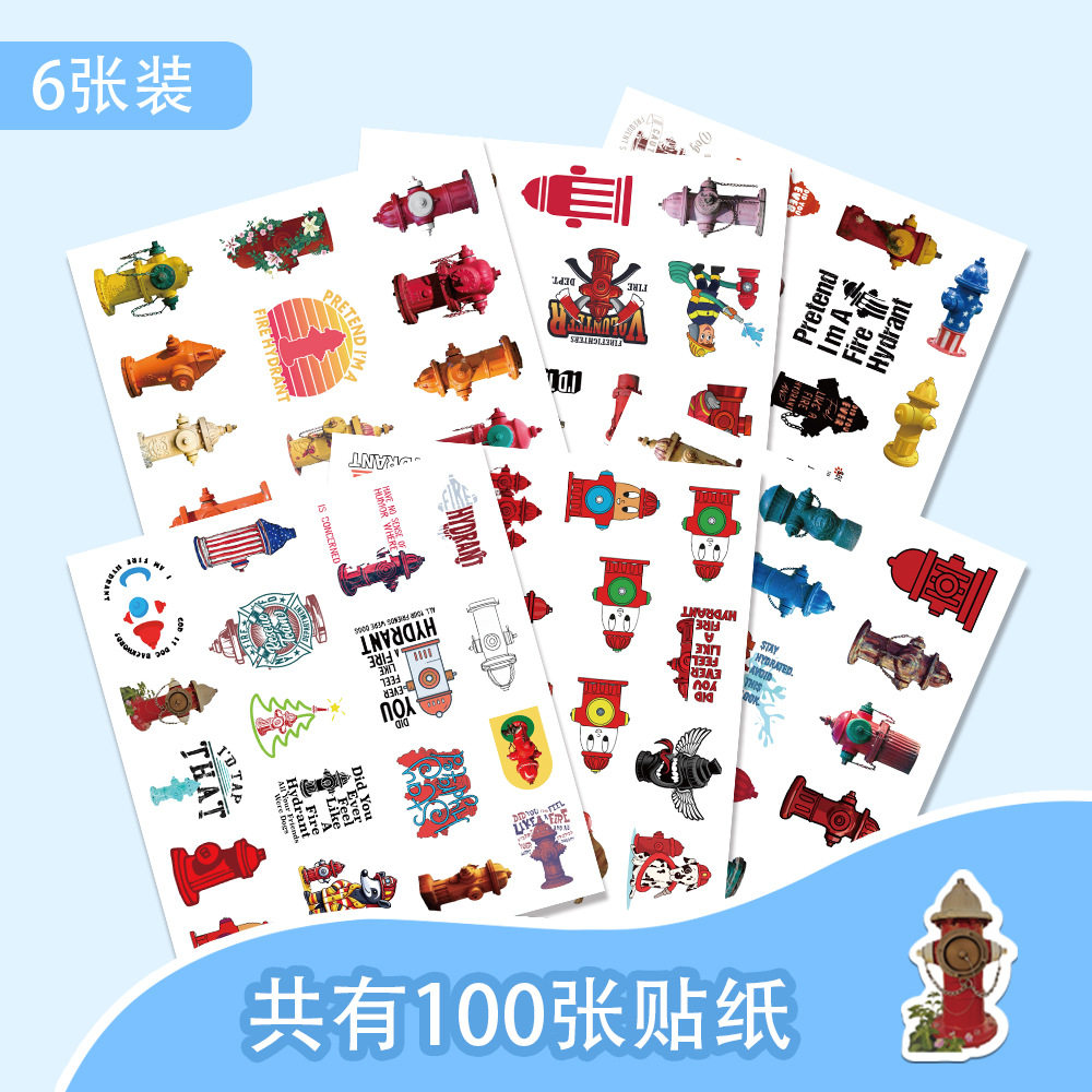 100张消防栓卡通贴纸跨境装饰汽车手机壳行李箱儿童贴画