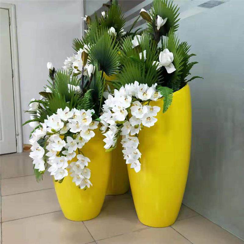 玻璃钢花盆简约斜口花钵商场装饰摆件售楼部花瓶户外组合花器美陈