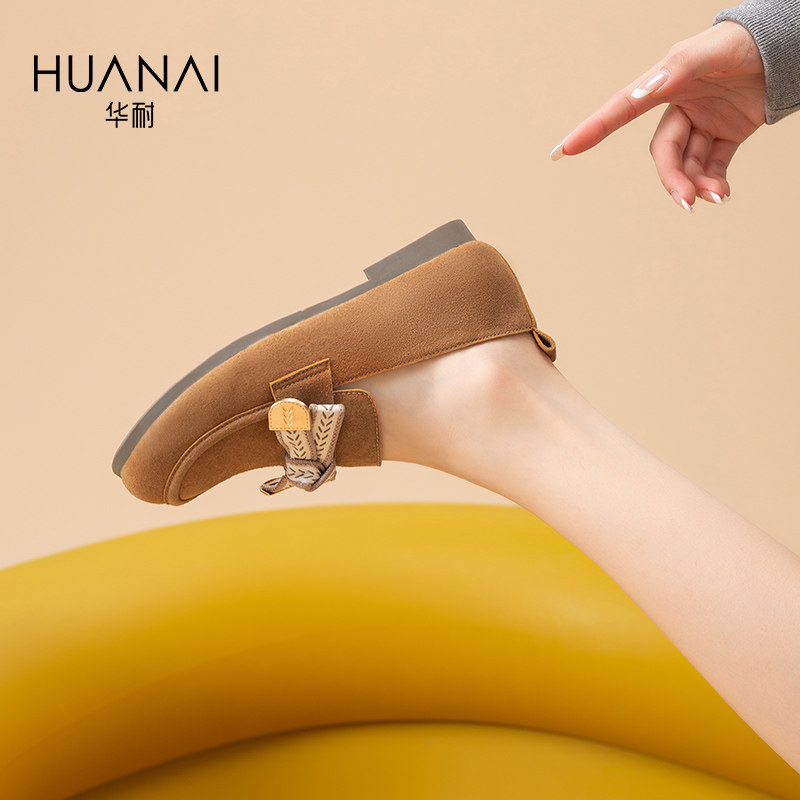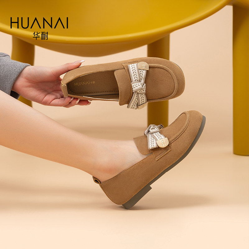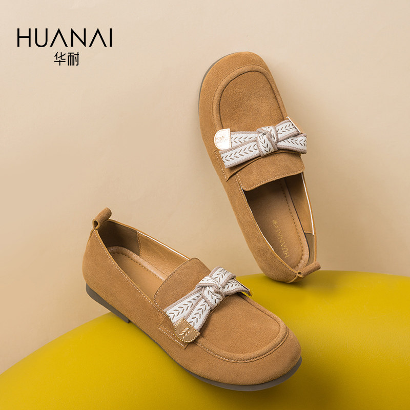 华耐一脚蹬勃肯鞋女2025新款秋冬蝴蝶结豆豆鞋复古休闲懒人乐福鞋