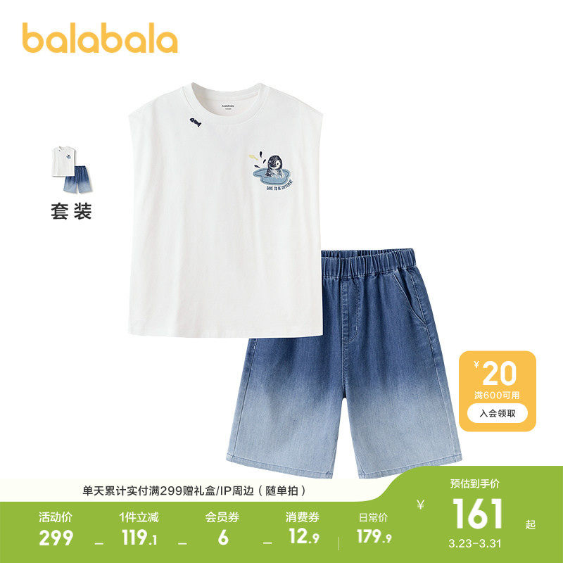 巴拉巴拉儿童背心套装男大童两件套2026休闲童装无袖时尚百搭洋气