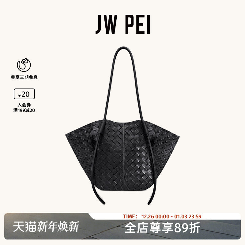 JW PEI宽版编织纹理托特包Nala大容量通勤单肩手提包新款8T030