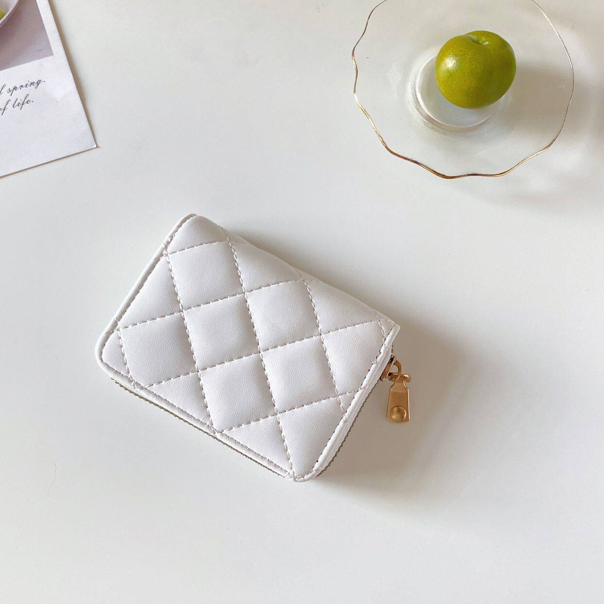 简约格子短款钱包女迷你小卡包2026韩版拉链钱夹可爱零钱包学生
