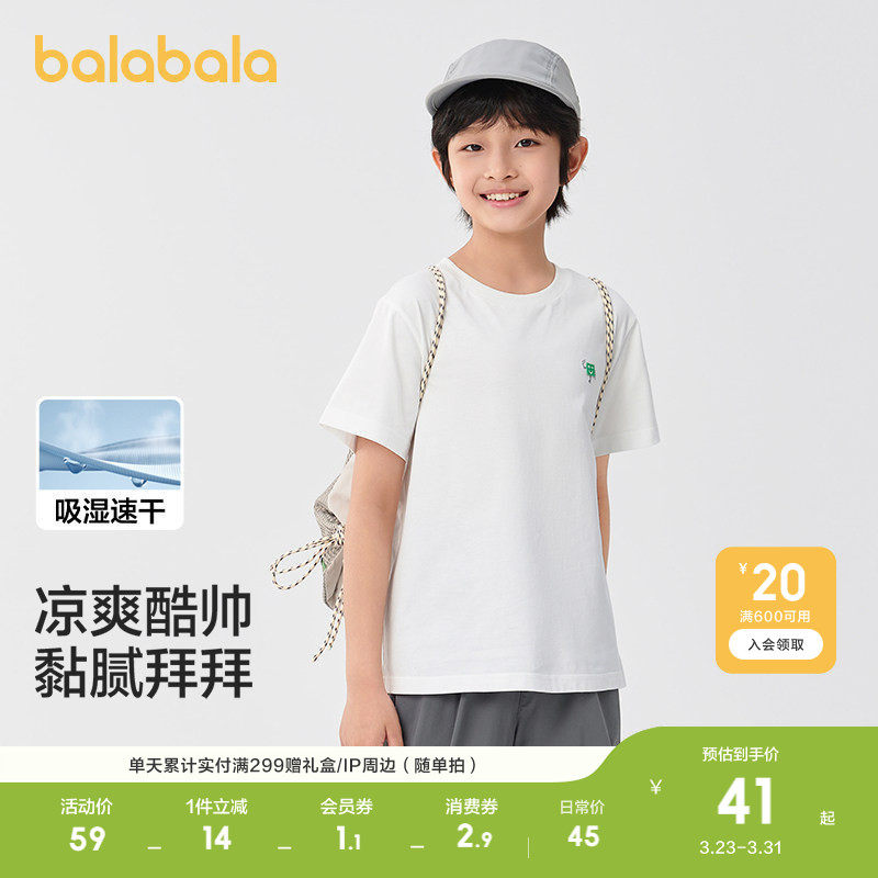 巴拉巴拉儿童短袖t恤男女童上衣童装轻薄款速干夏装休闲百搭上衣