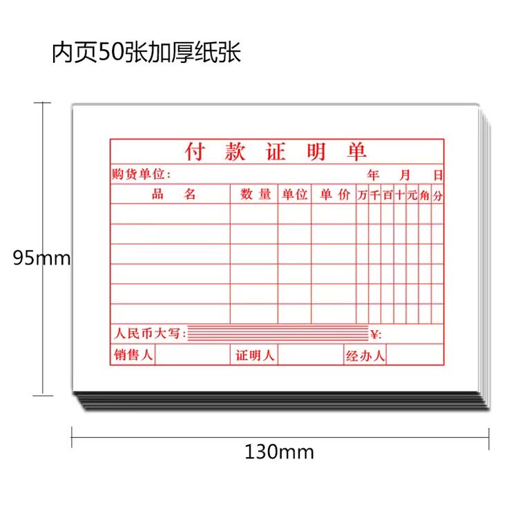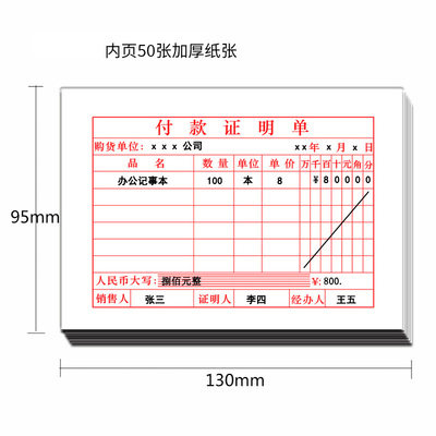 付款证明单单据收据付款凭证财务会计办公柜台开单小票支付证明