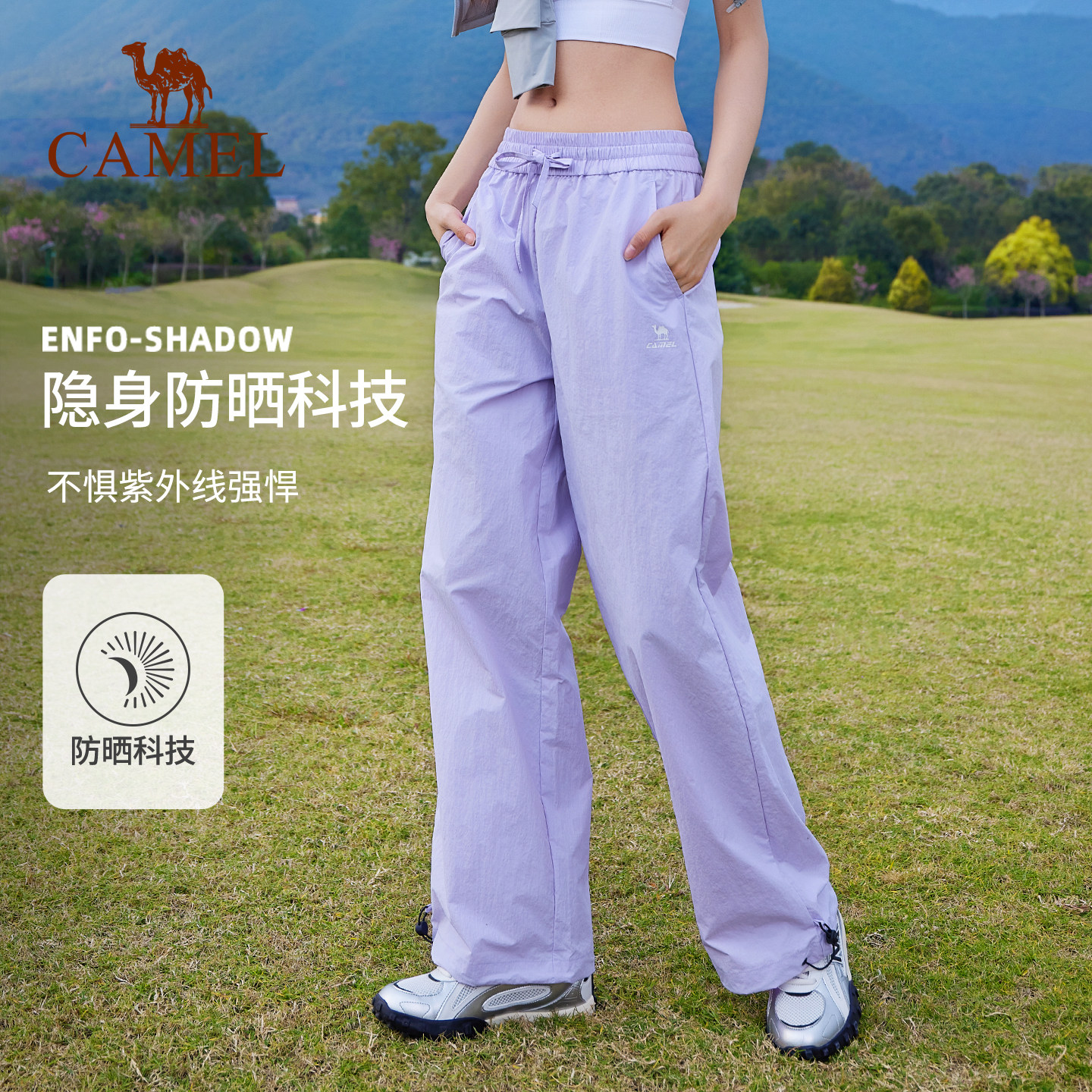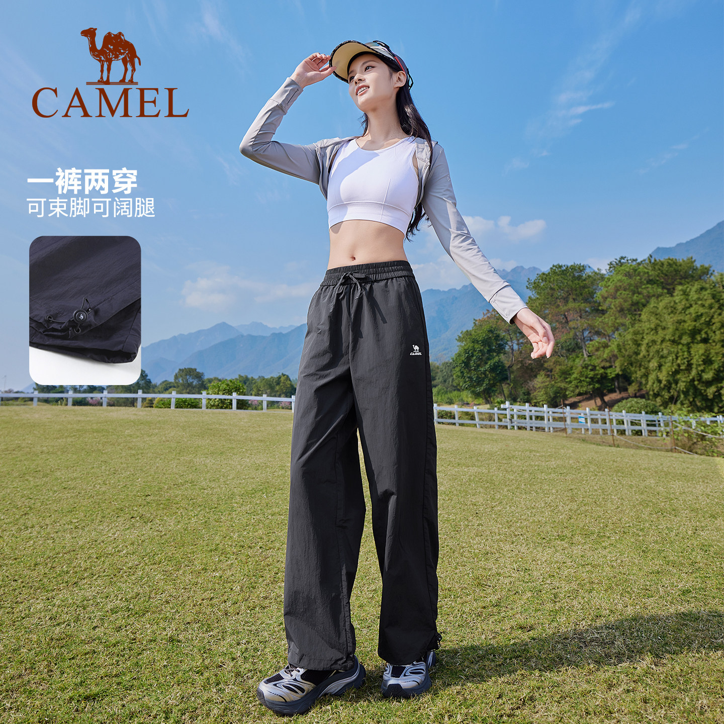 骆驼漫游运动长裤山本裤女防晒春夏透气宽松直筒小个子休闲弯刀裤