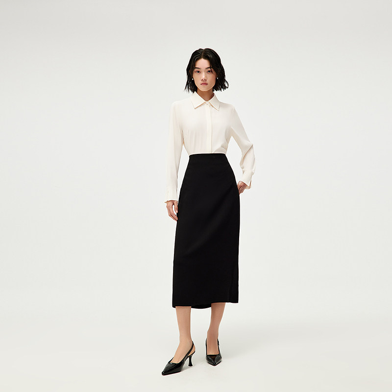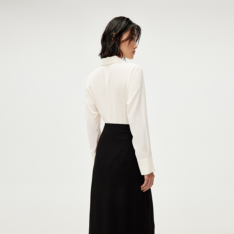 HLA/海澜之家休闲宽松长袖微弹衬衫25春夏季新款通勤翻领衬衣女装