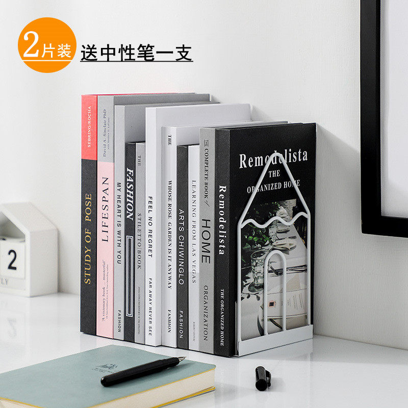 2片装书立书夹书靠书挡铁书架简易桌上夹书器简约学生用桌面课桌收纳放书的架子创意ins风挡板隔书立架摆书架
