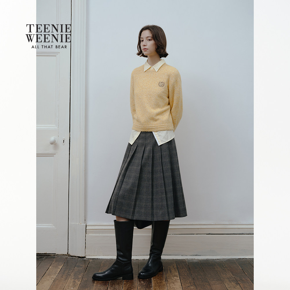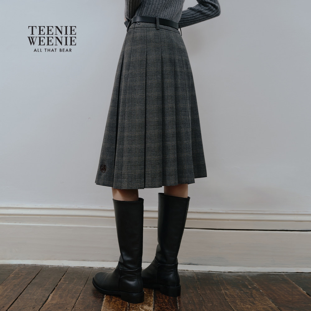 TeenieWeenie小熊女装半身裙秋冬季休闲气质优雅格纹中长百褶裙
