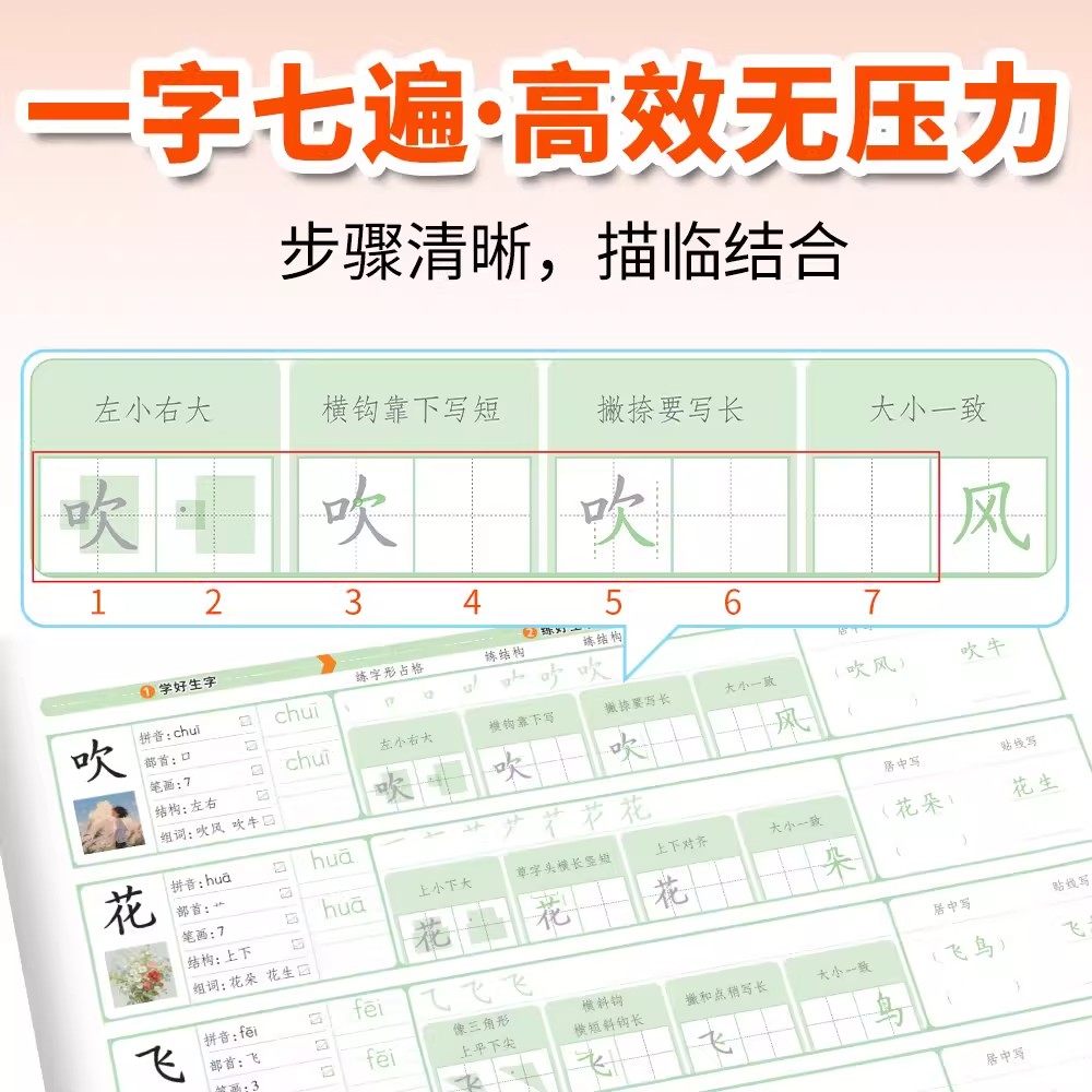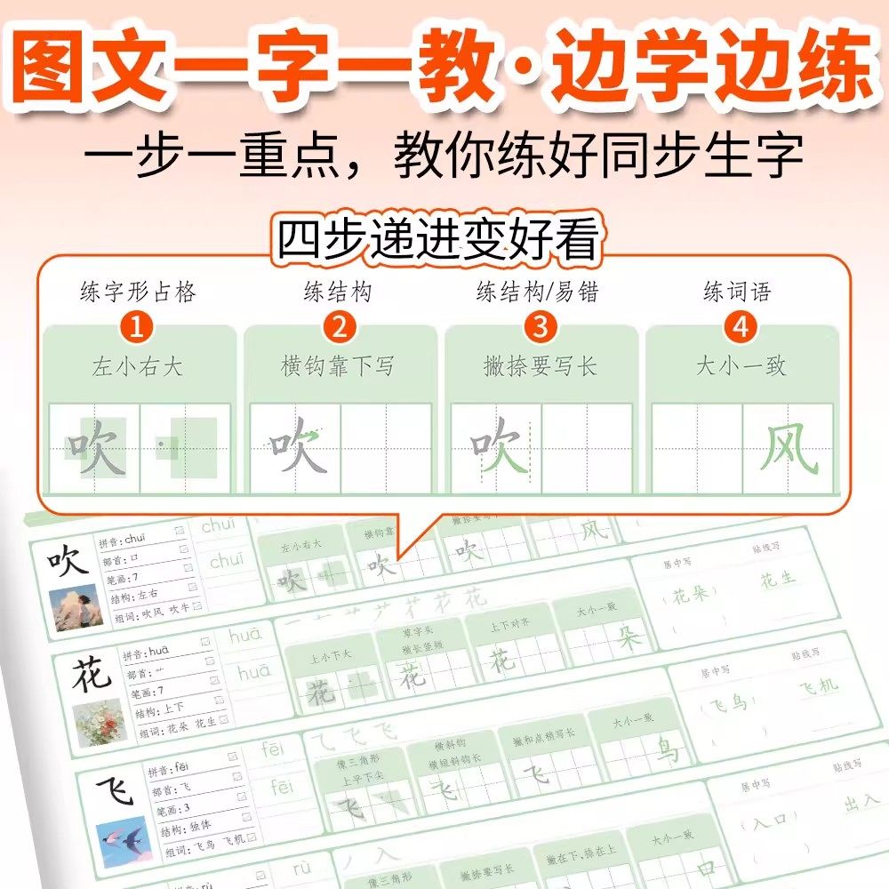 一年级练字字帖小学生语文同步人教版教材书梦家书写导航识字表硬笔描红练字本二三四五六年级上下册一类字二类字生字词语每日一练