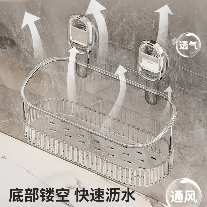 吸盘置物架厨房浴室卫生间免打孔壁挂式墙上收纳神器洗漱台收纳盒