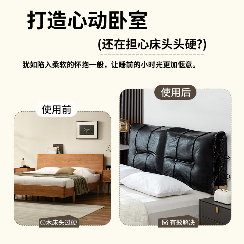 床头靠垫软包实木床头油蜡皮靠背罩套可拆洗卧室床头改造神器