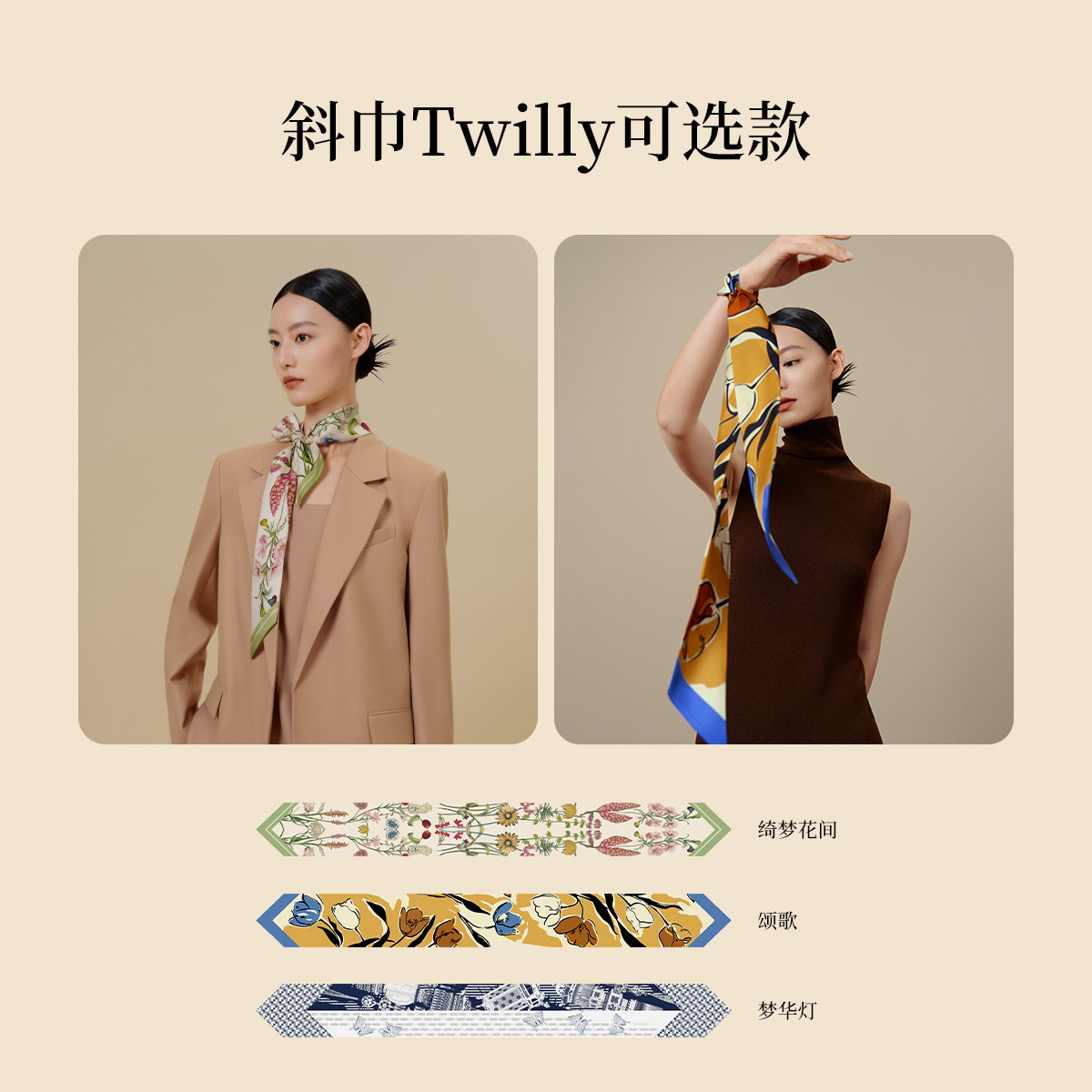 万事利真丝丝巾扣礼盒桑蚕丝小方巾斜巾送女友礼物生日礼品礼盒装