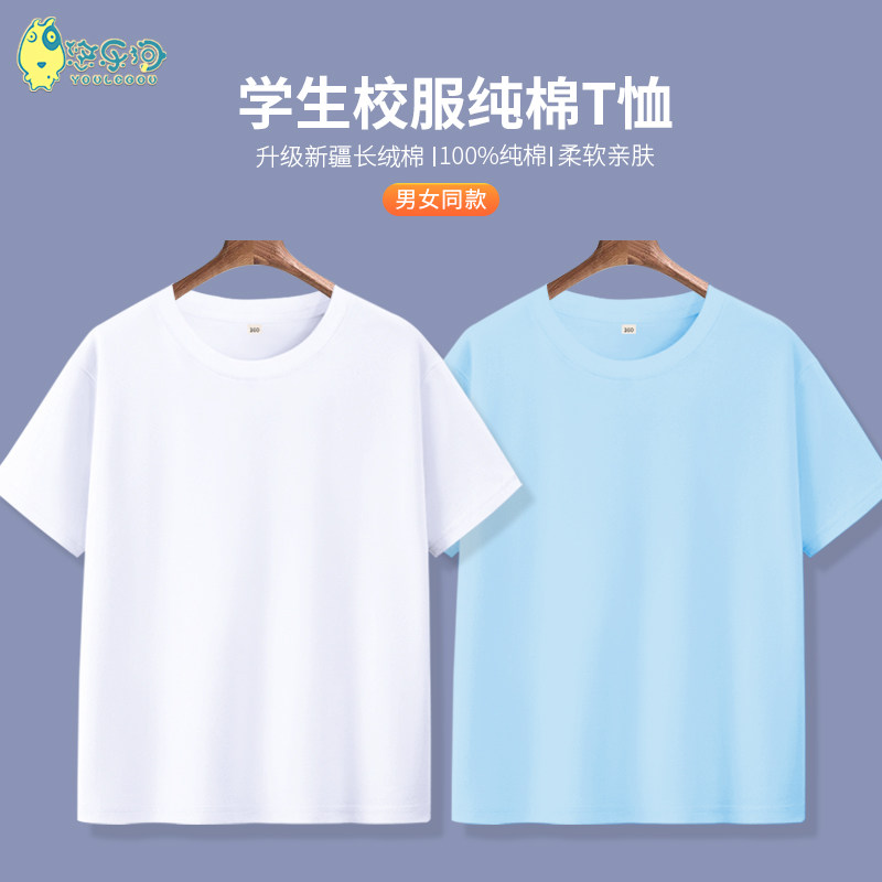 儿童t恤白色短袖纯棉夏季男童半袖上衣小学生班服纯白女童打底衫