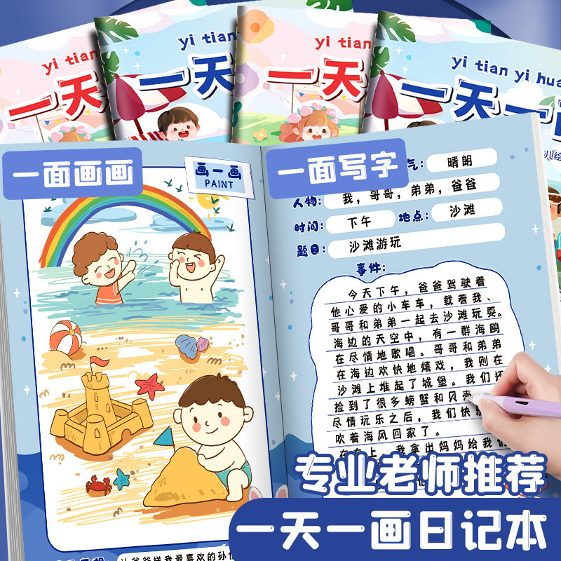 一天一画儿童卡通可爱少儿绘画日记本创意A5小学生画图写话幼儿园