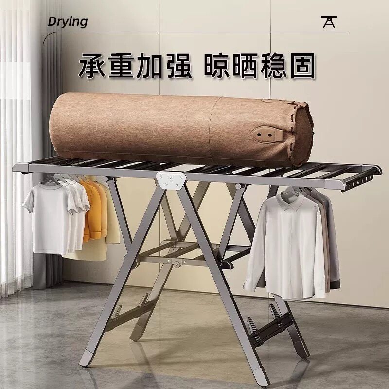 加粗加厚晾衣架落地折叠家用阳台卧室内简易可移动凉晒衣服被子杆