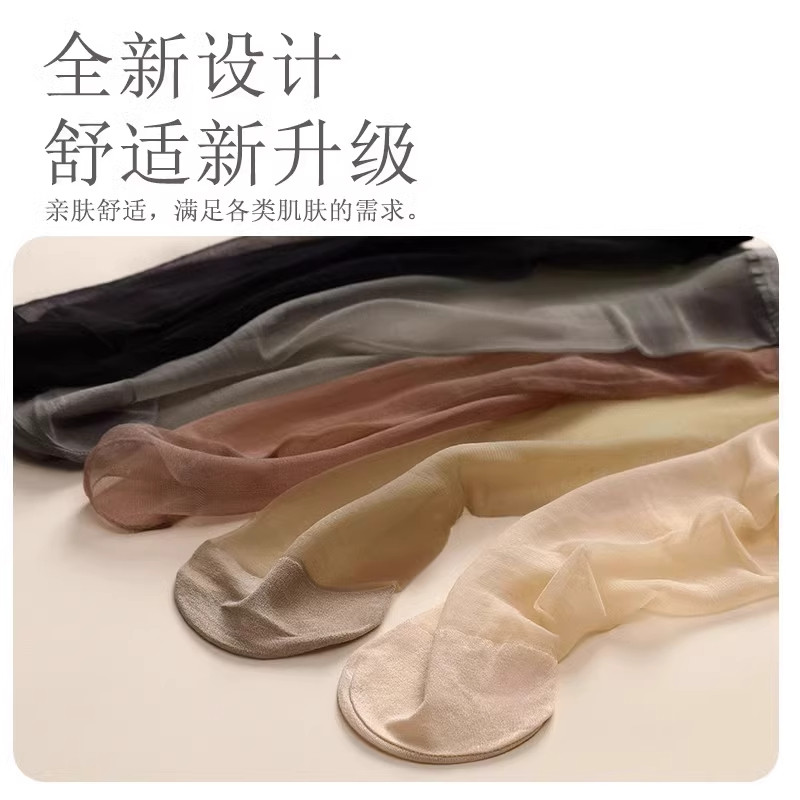 肉色丝袜女夏薄款水晶丝隐形短袜子女款透气防勾丝防滑中筒袜黑色