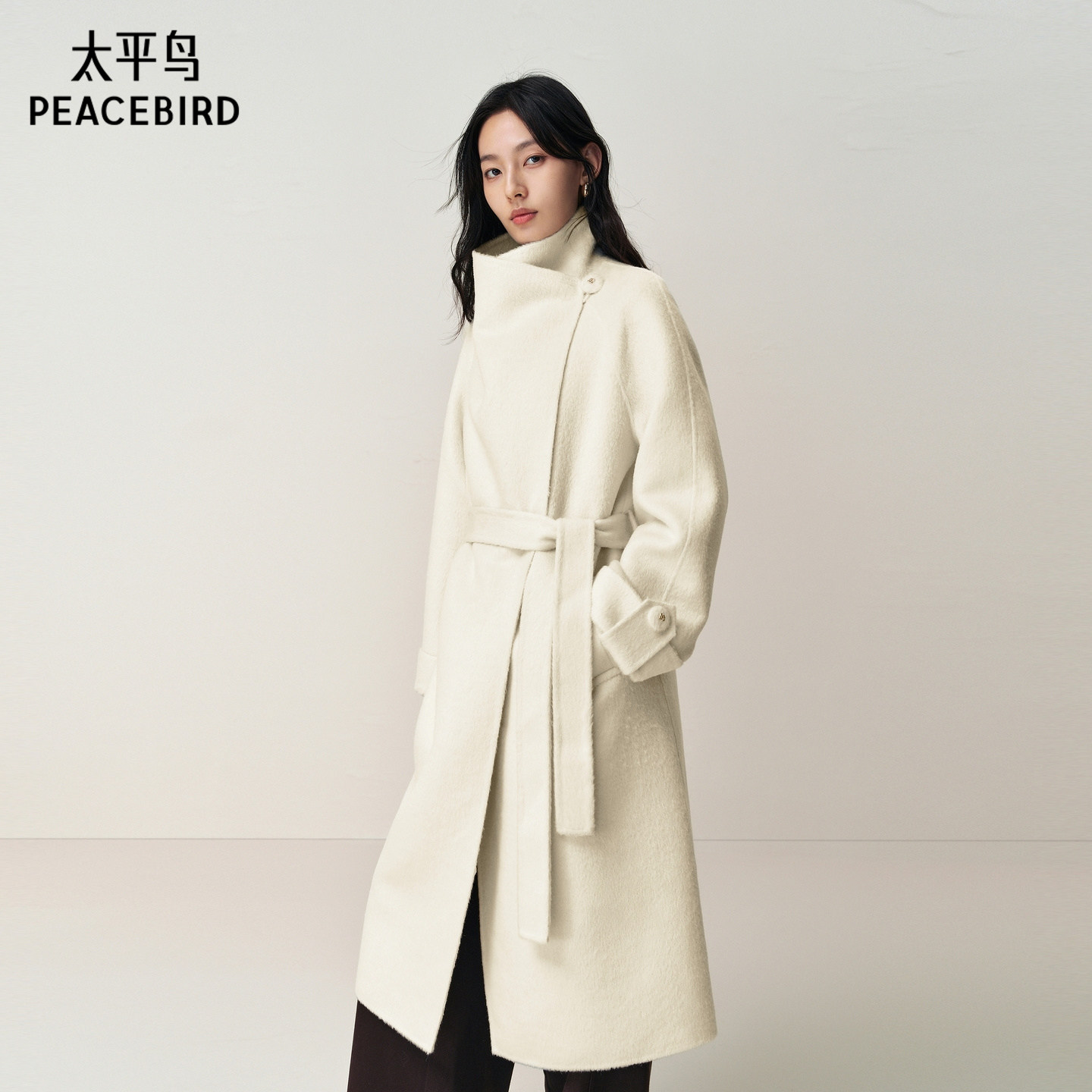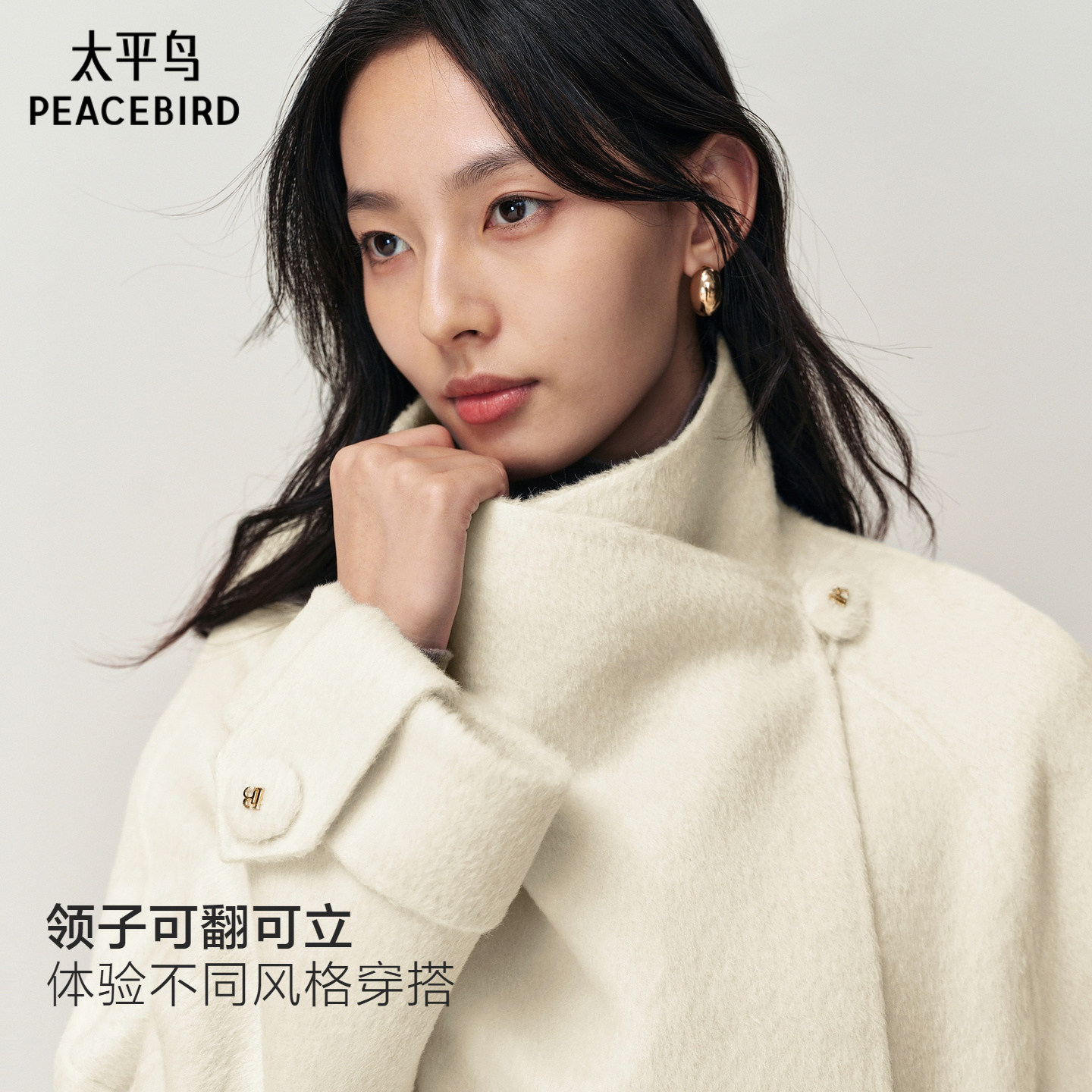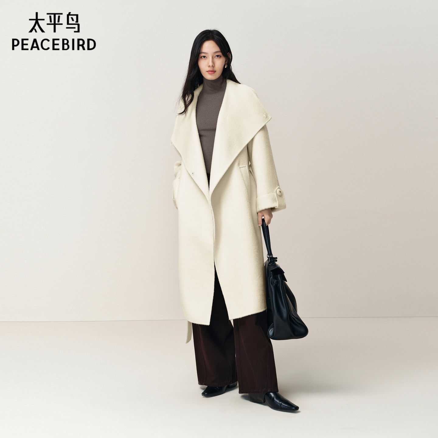 【商场同款】太平鸟羊驼毛双面呢大衣翻领廓形藏肉显瘦A1AAF4A02