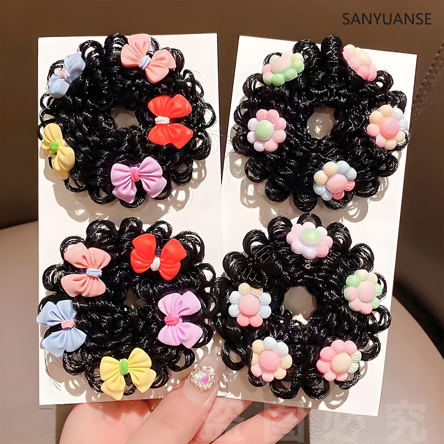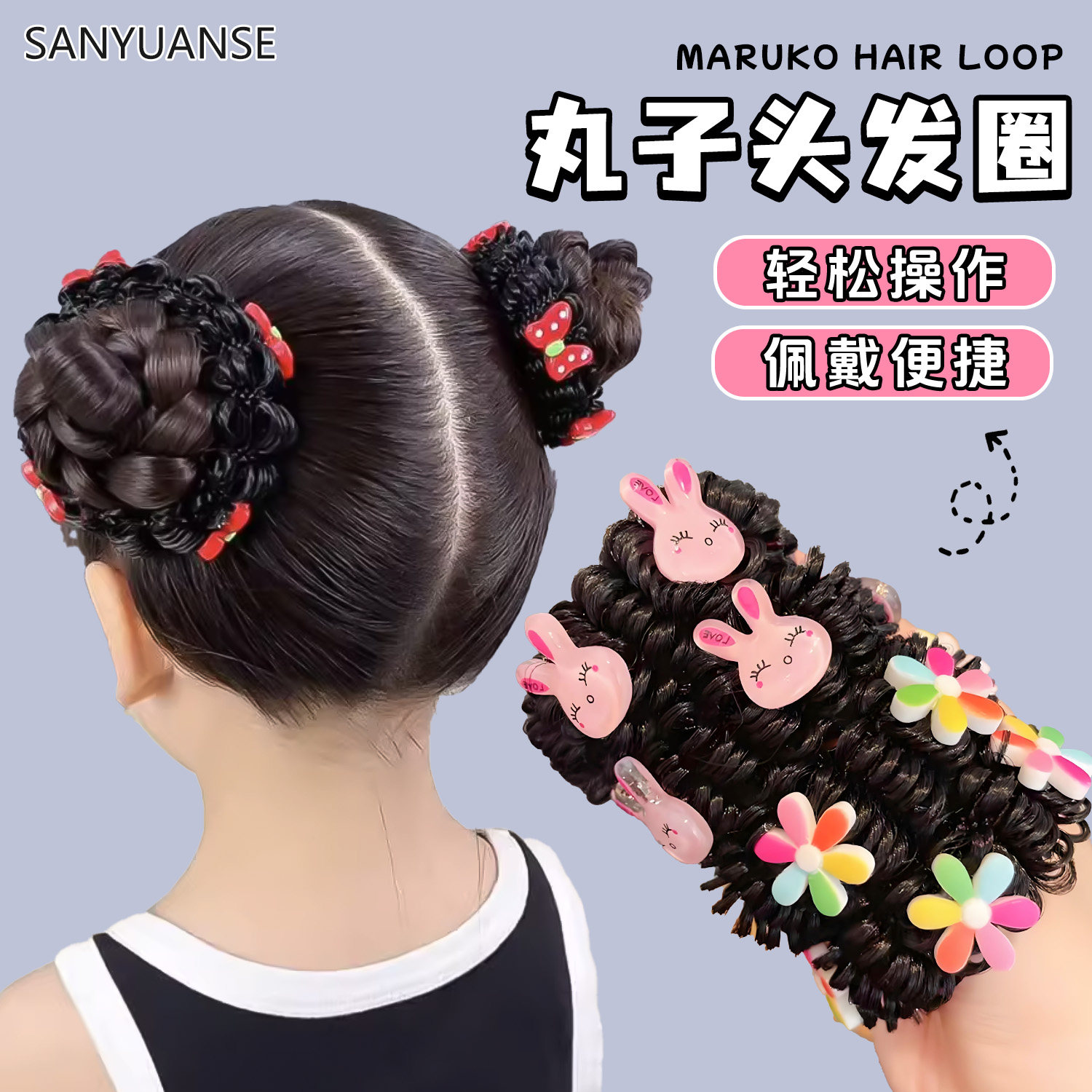 儿童丸子头假发圈小女孩大肠发饰蝴蝶结绳扎头花今年流行漂亮甜美