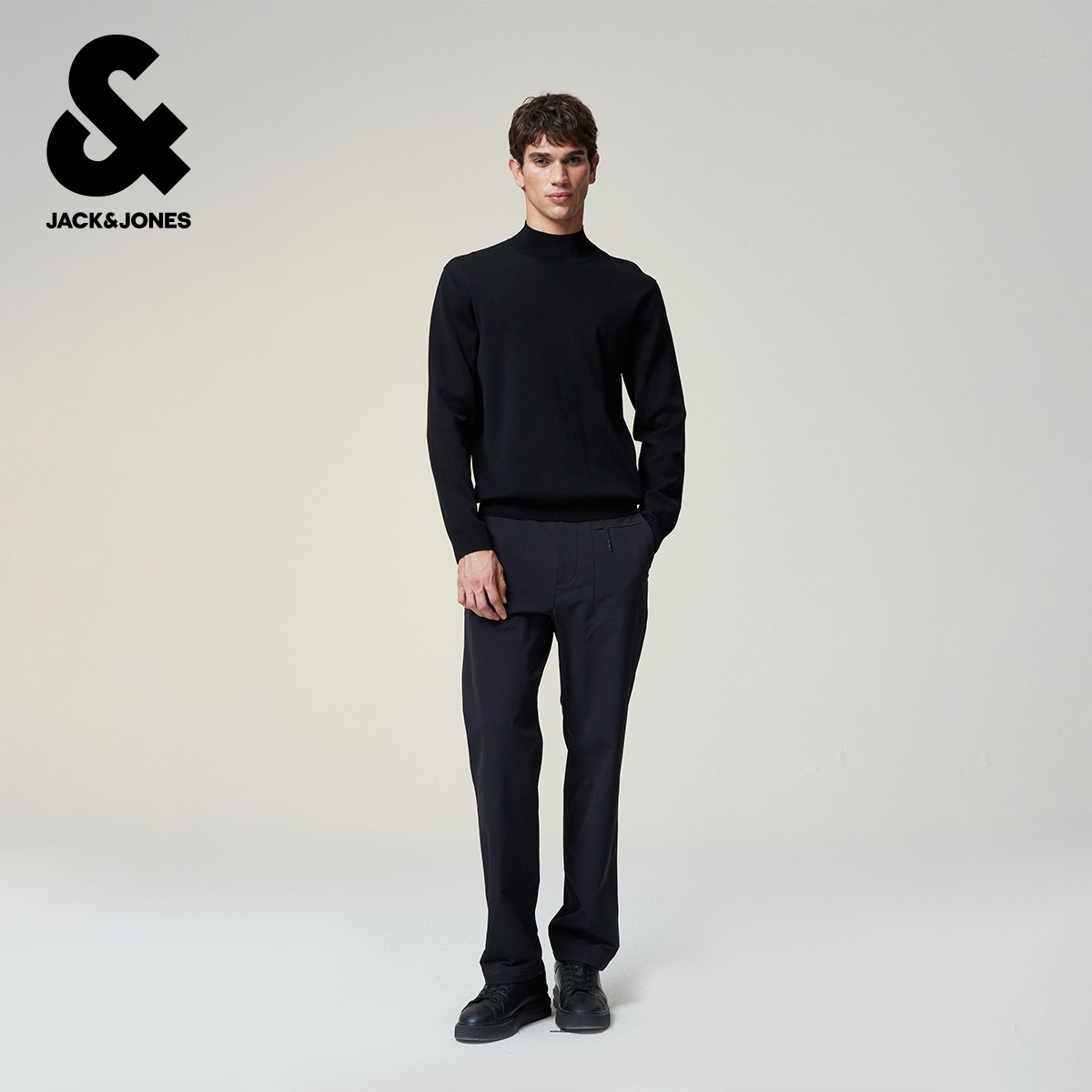 杰克琼斯男装春季毛衣针织衫高领纯色日常款合身罗纹领口长袖上衣