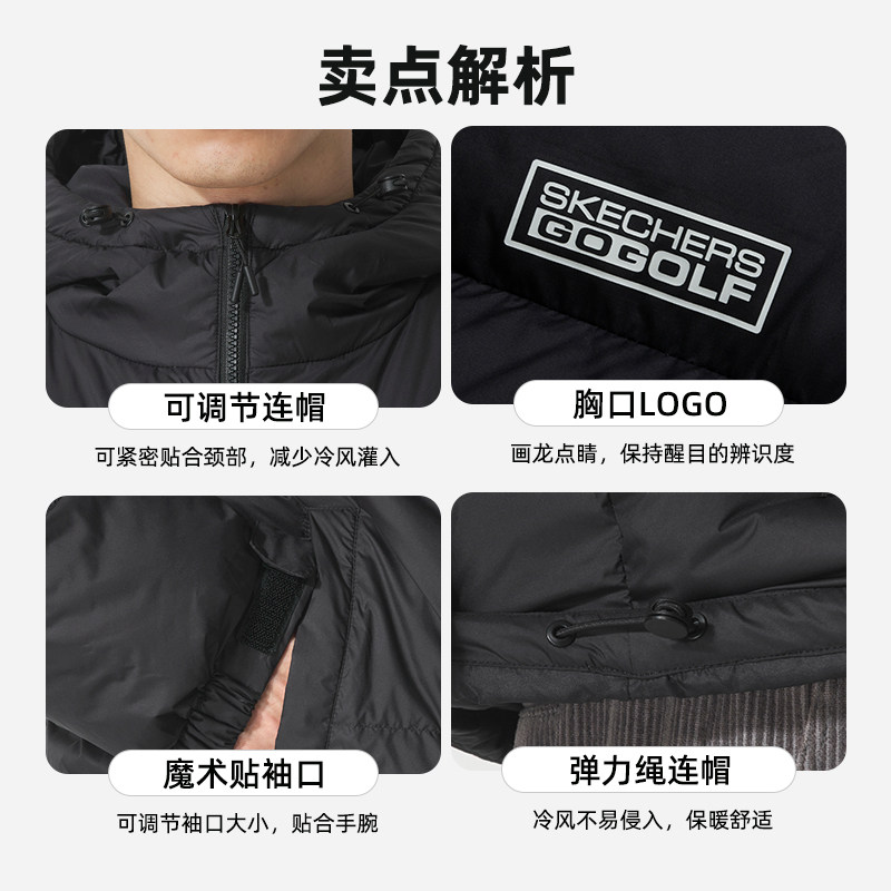 斯凯奇短款三防羽绒服冬季男女棉服保暖防风拒水运动外套