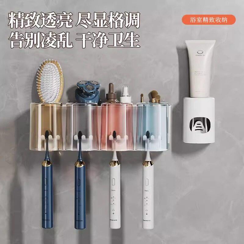 牙刷置物架免打孔卫生间漱口杯牙杯牙刷架子壁挂家庭牙具牙膏套装