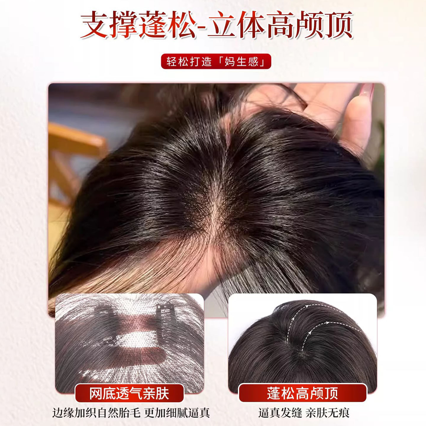 刘海假发女片头顶增发量真发遮白发蓬松高颅顶自然前额无痕补发片