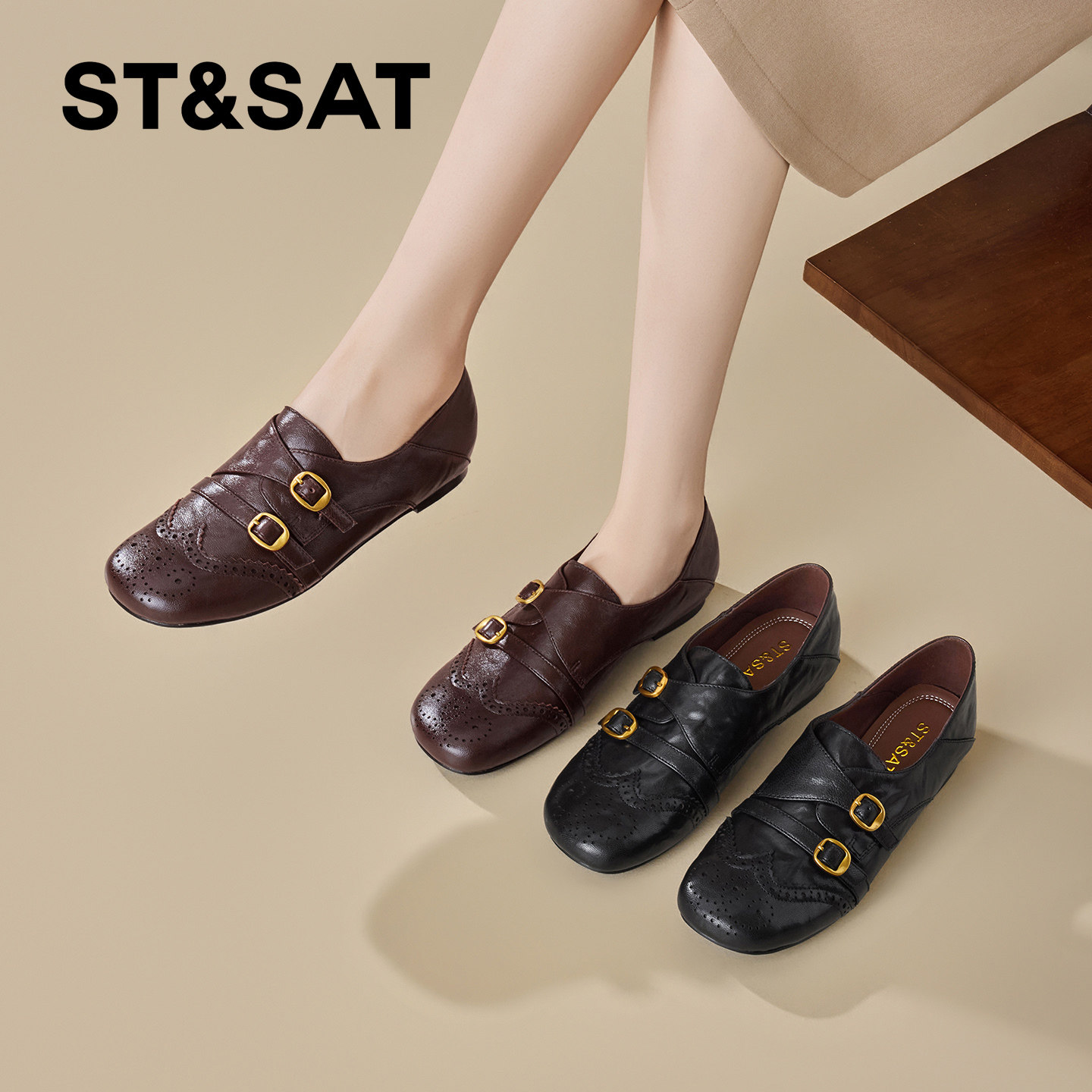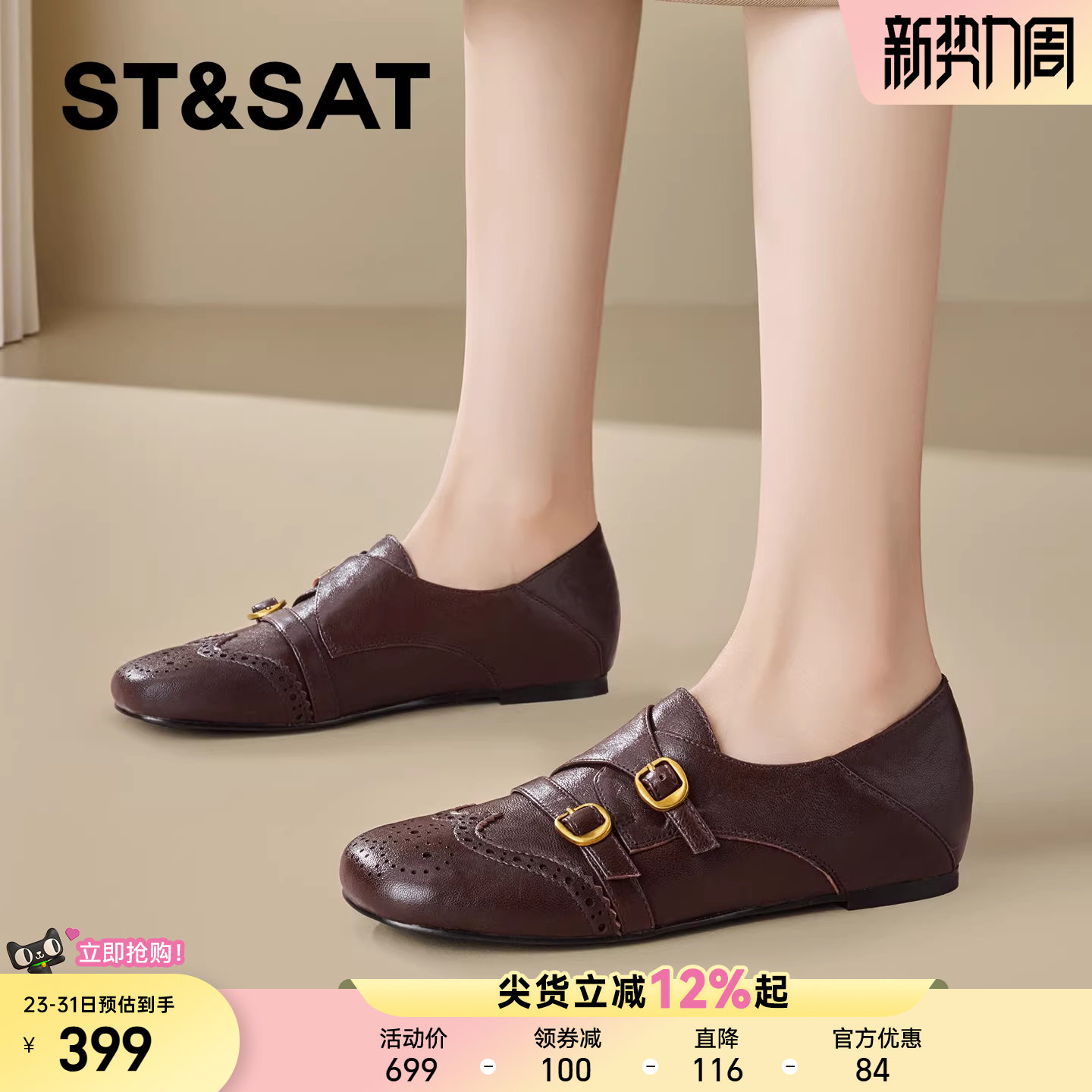 星期六真皮复古风雕花小皮鞋女2026春季新款内增高坡跟乐福鞋单鞋