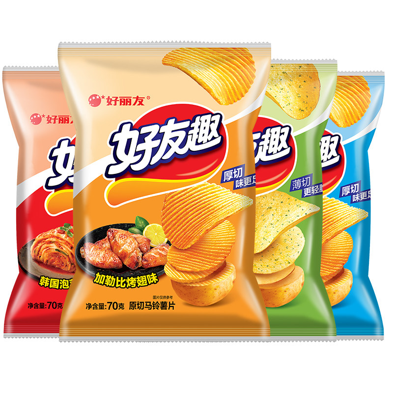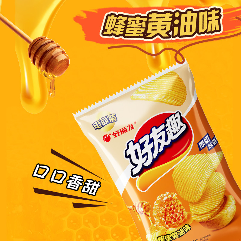 好丽友好友趣薯片袋小零食韩国泡菜味休闲食品小吃70g好有趣蜂蜜