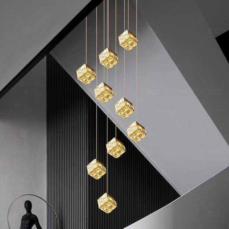 楼梯吊灯轻奢别墅跃层挑空客厅水晶长吊灯复式loft公寓楼梯间灯具