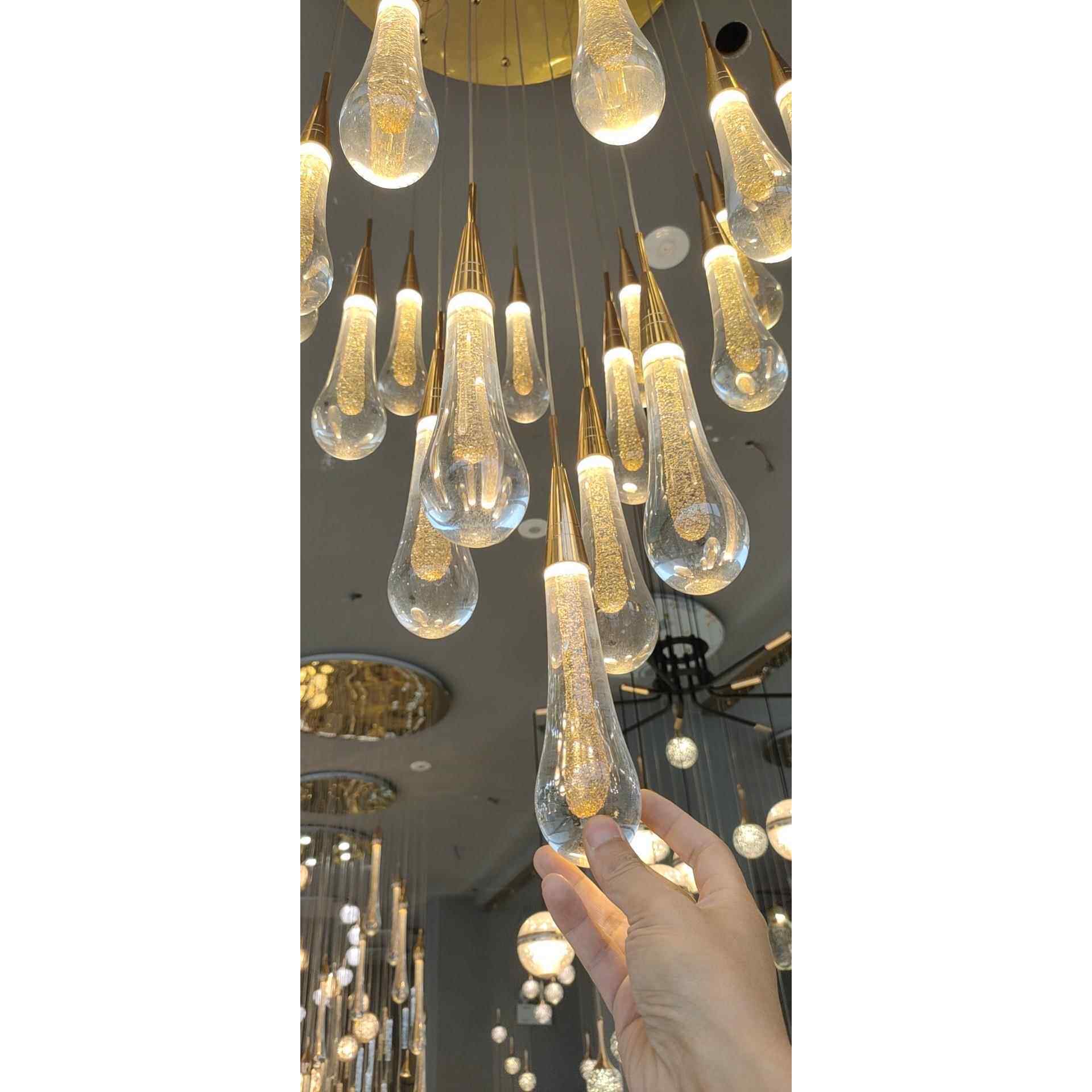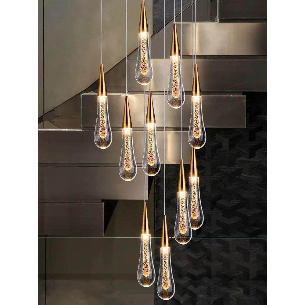 新款旋转楼梯吊灯复式楼客厅水晶长吊灯现代简约轻奢吧台餐厅灯具