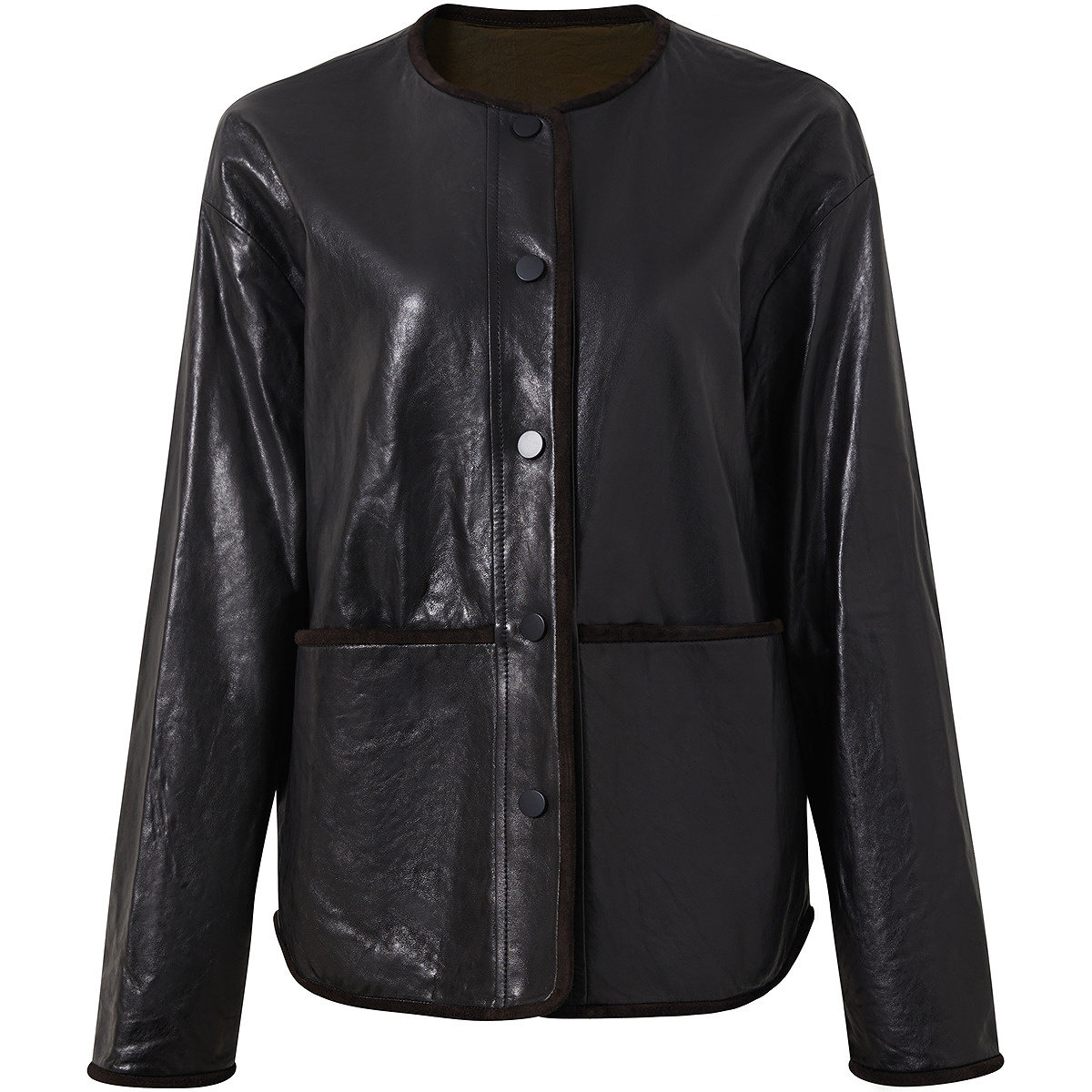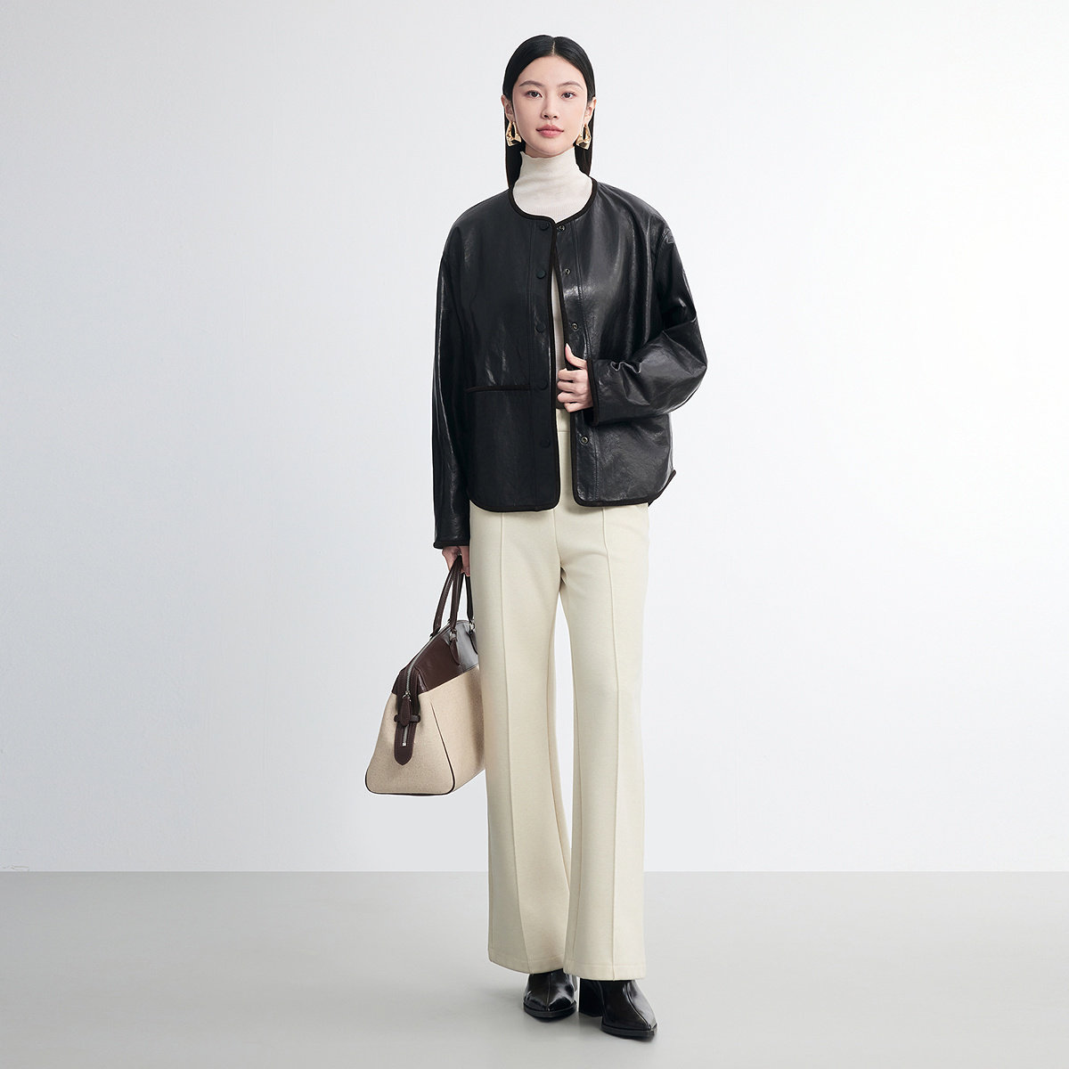 Eland衣恋皮衣女纯色带拉链长袖翻领外套2025冬季新款