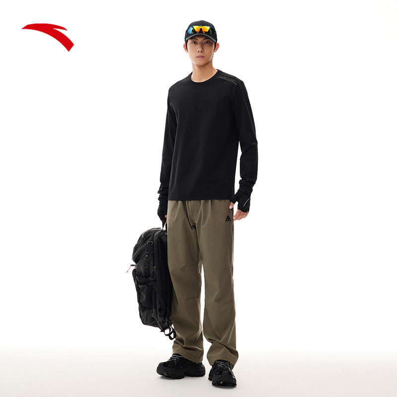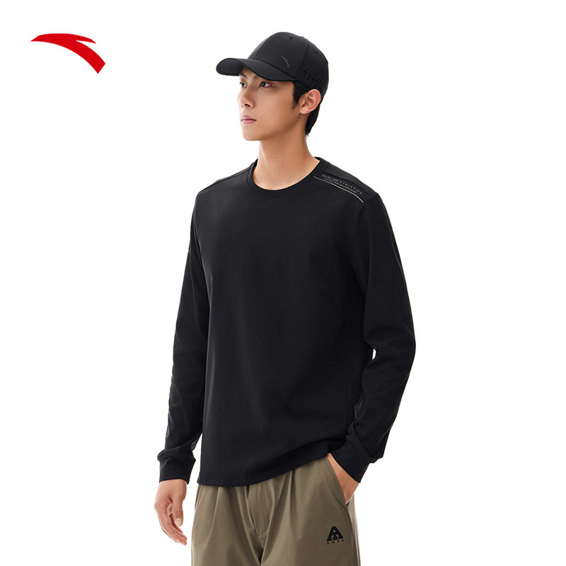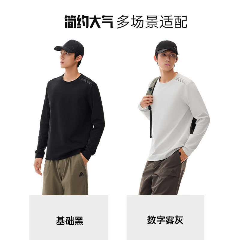 安踏通勤长袖t恤男士2025新款卫衣透气训练服打底衫健身防晒上衣