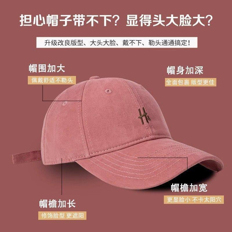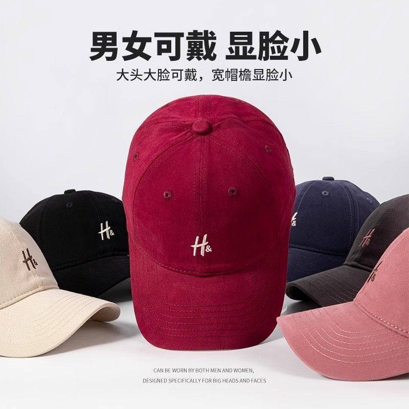 简约时尚字母刺绣棒球帽子女韩版大头围宽帽檐显脸小遮阳鸭舌帽男