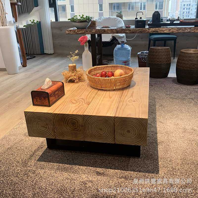 现代简约家具原木榻榻米小方桌小户型矮桌客厅实木拼接原木色茶几