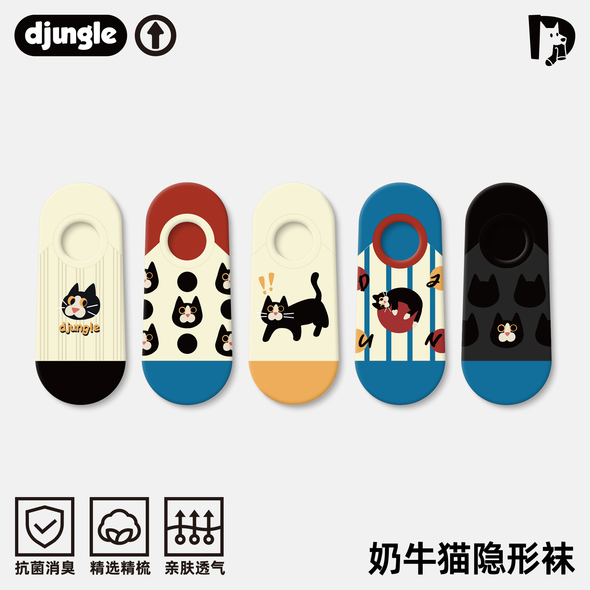 7A抗菌|蕉内银皮555Color男女情侣船袜浅口防滑棉袜隐形防臭袜子